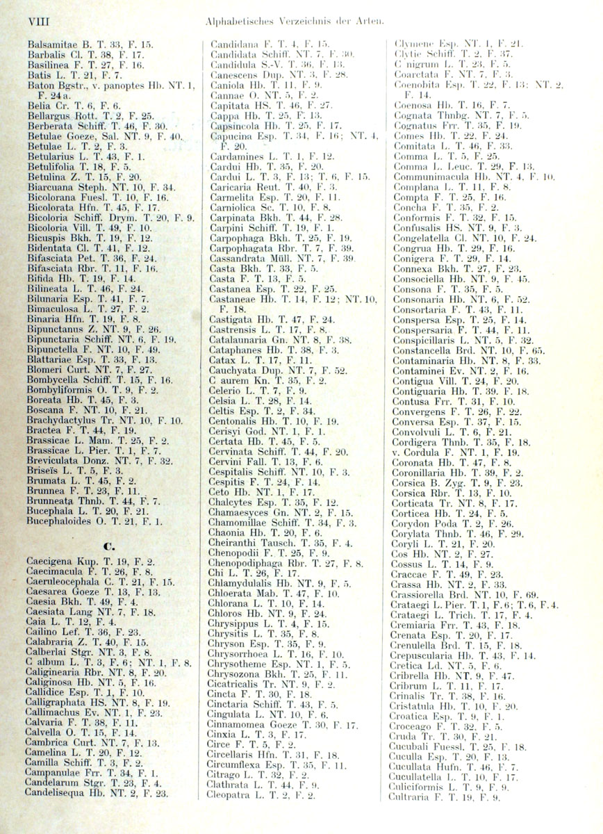Les chenilles (Planche d'Arnold Spuler Index Plantes nourricières n° 001)
