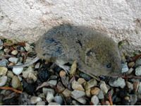 | | Sevrage | | Les jeunes campagnols terrestres croissent rapidement et sont sevrés à 14 jours. |