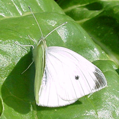 | Nom commun : piéride de la rave | Nom populaire : petit blanc du chou |