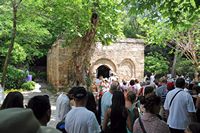 La Maison de Mère Marie est au centre d’un parc culturel (Meryem Ana Kultur Parki) qui comprend un vaste parc de stationnement, un restaurant, un café, des boutiques de souvenirs, un bureau de poste, des toilettes et même une gendarmerie. Visite de la Maison de Mère Marie (Meryem Ana Evi) : La maison de la Vierge Marie est située sur les pentes boisées de l’antique mont Koressós (de nos jours le Bülbül Daği, le mont du Rossignol). Elle se trouve à 9 km au sud-ouest de Selçuk, à droite de la route de Selçuk à Aydın ; depuis le site archéologique d’Éphèse la maison est à 7 km au sud de la porte supérieure (porte sud) et à 8,5 km de la porte inférieure (porte nord). Il n’y a pas de minibus (dolmuş) depuis Selçuk et les taxis sont assez chers (en moyenne 60 TRY aller-retour depuis la gare routière). Coordonnées géographiques : 37°54’50” N, 27°19’57” E. Téléphone : 00 90 232 894 10 12 Horaires de visite en été : tous les jours, de 8 h à 18 h. Horaires de visite en hiver : tous les jours, de 8 h à 17 h. Tarif d’entrée : 25 TRY pour les étrangers ; 10 TRY pour les citoyens turcs. Compter une dizaine de TRY en plus pour le parking. Le site voit défiler près de 300 000 visiteurs par an, car la visite de la Maison de Mère Marie fait partie de nombreux forfaits touristiques comprenant le site d’Éphèse. Les incrédules pourront remplacer la visite de la chapelle par une montée au sommet de la colline, par un chemin d’environ 600 m de longueur avec une centaine de mètres de dénivelée ; depuis le sommet de l’Aladaği, un sommet secondaire du Bülbül Daği, où se trouve un relais de télécommunications, il y a une belle vue sur le site d’Éphèse et sur la mer. | _small.jpg) _small.jpg) _small.jpg) _small.jpg) _small.jpg) |