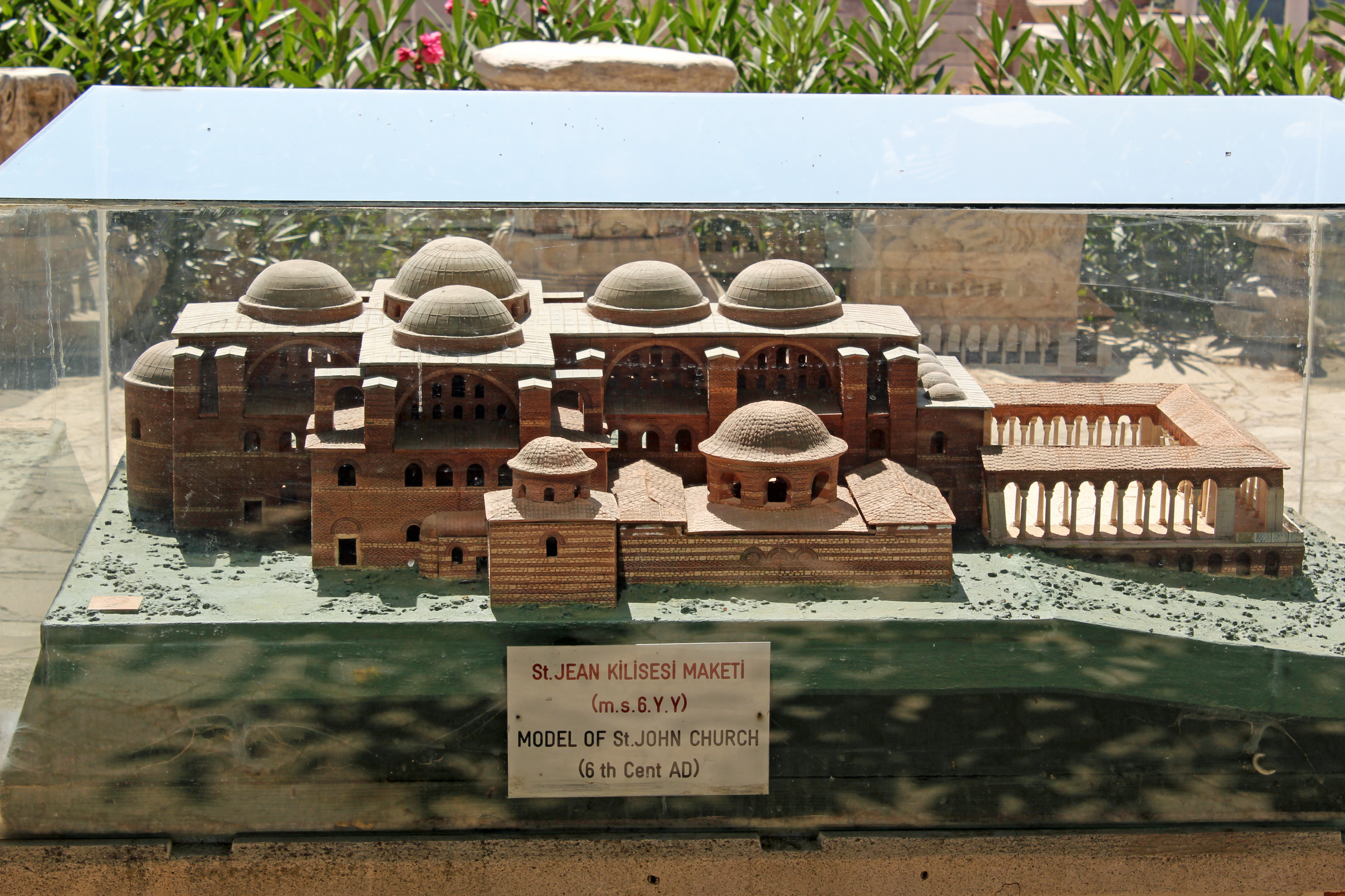 Entre le baptistère et le bras nord du transept se trouvait une petite pièce, dite « Maison du Trésor », comprenant sept niches où étaient conservés les biens précieux de l’église et les objets de culte. Vers le Xe ou le XIe siècle, la maison du Trésor fut transformée en chapelle. Les Turcs seldjoukides reprirent la région au début du XIVe siècle et transformèrent la basilique Saint-Jean en mosquée en 1330 ; les pèlerins chrétiens devaient payer pour accéder à la tombe de saint Jean. Après la construction de la mosquée İsa Bey, en 1375, la basilique fut transformée en bazar. En 1402 l’armée mongole de Tamerlan s’empara d’Ayasoluk et détruisit la ville ; la basilique ne fut pas épargnée ; les tremblements de terre achevèrent la destruction de la basilique Saint-Jean et de ses imposantes coupoles. En 1425 les Turcs ottomans s’emparèrent de la région et laissèrent la basilique à l’abandon pendant près de 600 ans. Les ruines de la basilique servirent à leur tour de carrière de pierre. En 1922, pendant la brève reconquête de la partie occidentale de l’Anatolie par les armées grecques, des archéologues effectuèrent des fouilles et localisèrent le tombeau de saint Jean, mais n’eurent pas le temps d’excaver les ruines ; les Grecs furent forcer – par les accords internationaux – de restituer la région à la Turquie. Le tombeau de saint Jean fut redécouvert par les fouilles archéologiques de 1926 à 1928. À partir de la moitié du XXe siècle, les archéologues autrichiens entreprirent un long travail de reconstitution partielle, mais soigneuse, qui permet de nos jours au visiteur d’avoir une bonne représentation de ce que fut l’ancienne majesté de la basilique et de ses dimensions gigantesques. Visite de la basilique Saint-Jean (Saint Jean Bazilikası ou Aziz Yohannes Bazilikası) :