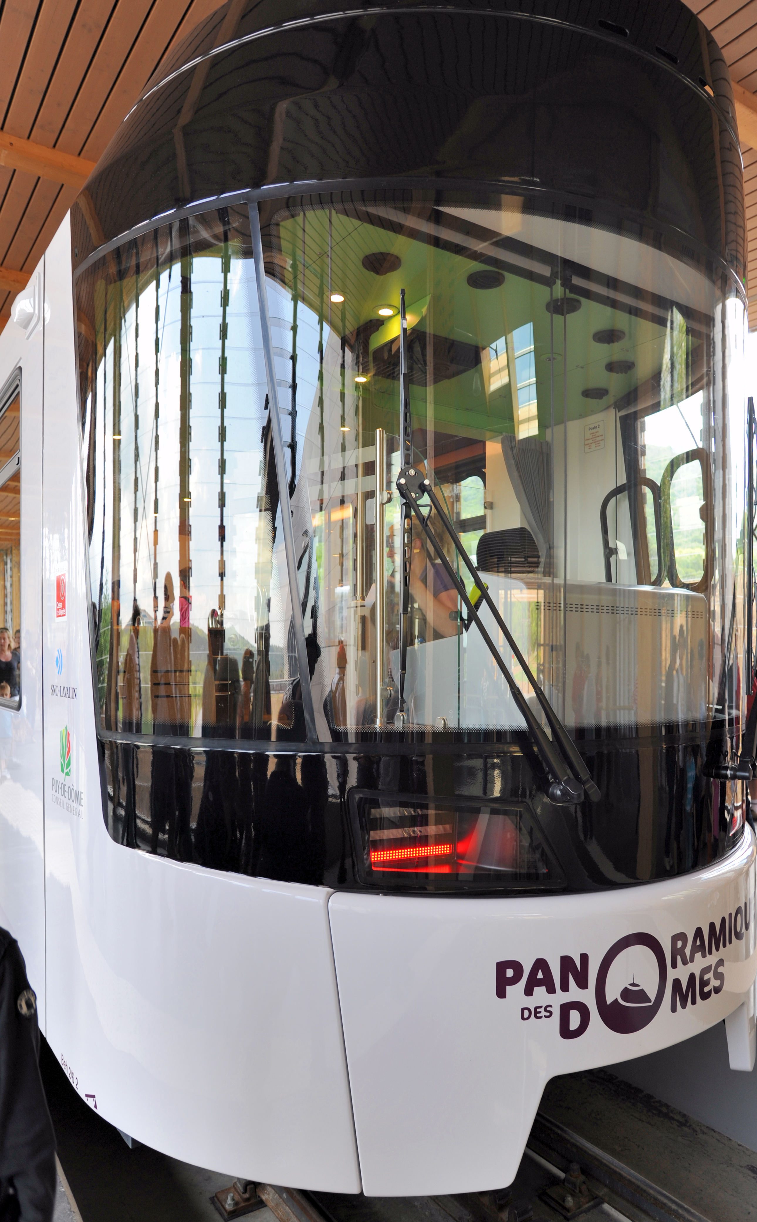 Le Panoramique des Dômes est un train électrique à crémaillère permettant d’accéder au sommet du puy de Dôme en quinze minutes à une vitesse de 20 à 30 km/h. Il peut transporter jusqu’à 1 200 passagers à l’heure dans chaque sens, chaque rame comprenant deux voitures pouvant transporter 200 passagers (112 assis et 88 debout). Le système à crémaillère permet de gravir les fortes pentes (jusqu’à 1 %) en toute saison.