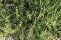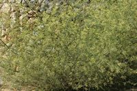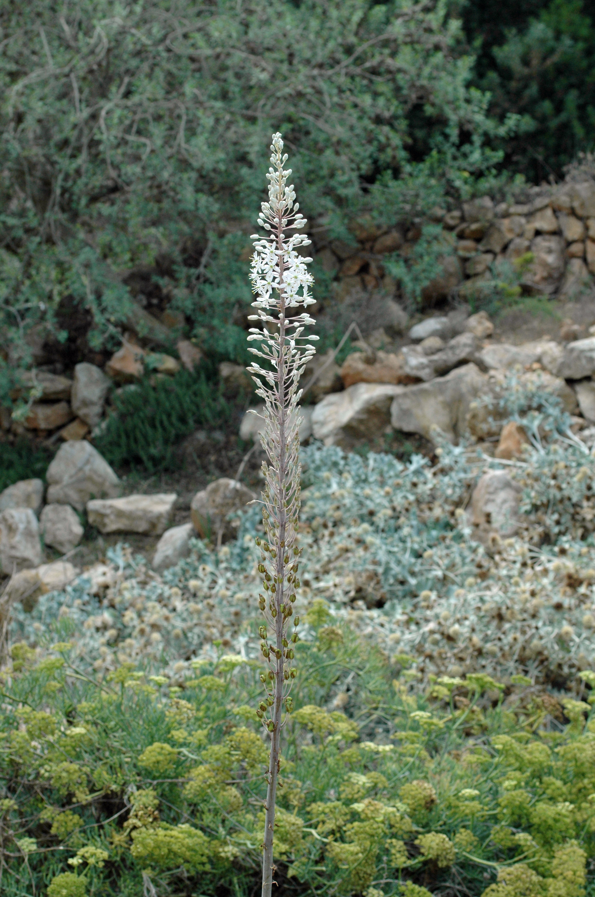 | | | Asperge sauvage (Asparagus acutifolius) (espareguera ruca, espareguera de ca / esparraguera triguera) | | Toute la plante est couverte de nombreuses branches plumeuses de couleur vert foncé. L’asperge sauvage prend souvent le port d’une liane. Vit dans les endroits frais et ombragés. Elle fleurit en fin d’été. | _small.jpg) | | Ampelodesmos de Mauritanie (Ampelodesmos mauritanicus) (càrritx) | | Graminée de grande taille, aux feuilles rugueuses au toucher qui peuvent couper la peau des mains si elles sont prises en main sans précaution. | _small.jpg) _small.jpg) | | Astragale des Baléares (Astragalus balearicus [Chater]) (eixorba-rates negre, eriçons, gatovell, coixinet de monja, socorrela) | | Buisson dense et épineux et de forme arrondie dont les feuilles sont divisées en folioles. Au fil du temps, les rachis des feuilles deviennent des épines. | _small.jpg) | | Bruyère à fleurs nombreuses (Erica multiflora [Linné]) (bruc d’hivern, xiprell / brezo, bruguera, ucre) | | Plante à fleurs roses, toutes regroupés à l’extrémité des branches, et qui s’ouvrent à l’automne. La plante a de petites feuilles groupées par trois. | _small.jpg) _small.jpg) | | Ciste de Montpellier (Cistus monspeliensis) (estepa llimonenca, estepa negra / estepa morisca, estepa mosquera, estepa negra, jaguarzo negro) | | Le ciste de Montpellier a des fleurs blanches et des feuilles vert foncé. Son identification est facile parce que les feuilles sont très allongées et ont des glandes qui donnent une odeur caractéristique et qui s’accrochent aux doigts. | _small.jpg) | | Diplotaxis d’Ibiza (Diplotaxis ibicensis) | | Herbe dressée qui peut atteindre un demi-mètre de hauteur. Elle a les feuilles profondément divisées aux lobes étroits. Les fleurs sont jaunes et assez grandes. | _small.jpg) | | Euphorbe des garrigues (Euphorbia characias) (lletrera visquera, visc / euforbio mediterráneo) | | Euphorbe de grande taille dont les glandules de l’inflorescence sont de couleur brun très foncé. Abondante dans les montagnes et dans les clairières. | _small.jpg) _small.jpg) | | Euphorbe arborescente (Euphorbia dendroides) (lletrera / titímalo árbol) | | Plante de port arbustif qui se caractérise par la perte des feuilles pendant l’été, laissant la structure des branches à nu pendant les mois les plus chauds ; elle retrouve de nouvelles feuilles en septembre. | _small.jpg) _small.jpg) _small.jpg) | | Fenouil commun (Foeniculum vulgare [Linné]) (fonoll / hinojo) | | Le fenouil est une des ombellifères les plus courantes des champs abandonnés et des chemins. Il est reconnaissable à ses feuilles laciniées et à ses inflorescences jaune verdâtre. | _small.jpg) _small.jpg) | | Férule commune (Ferula communis [Linné]) (canyaferla / cañaheja) | | La férule commune se caractérise par le fait de produire une inflorescence imposante, une tige épaisse mais légère qui peut mesurer plus de deux mètres de hauteur, dépasse le bois d’yeuse et donne un accent singulier au paysage de Cabrera. Traditionnellement, on la cueillait pour l’utiliser lors des fêtes patronales de Santanyí, au cours desquelles les démons la portaient comme sceptre et garrot. | _small.jpg) | | Germandrée à têtes (Teucrium capitatum) (farigola mascle, herba de Sant Ponç / polio, tomillo macho, zamarilla) | | Petite touffe de feuilles et de tiges couvertes de pilosité blanchâtre. Les feuilles, opposées, sont faiblement lobées au bord. Les inflorescences sont groupées en petites grappes et les fleurs sont de couleur rose ou pourpre. | _small.jpg) | | Globulaire buissonnante (Globularia alypum) (foixarda, fusellada, ullastró / coronilla de fraile) | | Plante très ramifiée reconnaissable à ses fleurs réunies en capitules bleus. Elle fleurit en automne ou en hiver. | _small.jpg) | | Hellébore de Majorque (Helleborus lividus) (palònia borda) | | Se trouve au pied des rochers dans les endroits ombragés. L’hellébore a des feuilles coriaces divisées en trois folioles. Fleurit de la fin de l’hiver au début du printemps. | _small.jpg) | | Immortelle des dunes (Helichrysum stoechas) (flor de mort, flor de Sant Joan / manzanilla bastarda, siempreviva) | | Plante à feuilles qui ont une odeur bien caractéristique (rappelant le curry) ; les feuilles sont linéaires, petites et blanchâtres. Les fleurs sont de couleur jaune d’or. | _small.jpg) | | Lis maritime (Pancratium maritimum) (lliri blanc de marines, lliri de mar, lliri d’arenal, assutzena d’arenal / azucena marina) | | Le lis maritime a de grandes fleurs blanches au milieu du mois d’août. Les feuilles sont allongées, de couleur vert glauque et tordues, avec une consistance assez ferme. Il pousse sur les plages. | _small.jpg) | | Mauve royale (Malva arborea, Lavatera arborea) (malva, malvera, vauma / malva) | | La mauve royale se différencie des autres malvacées par sa taille et parce que le calicule est nettement plus long que le calice. Vit dans les milieux dégradés et au bord des ravins. | _small.jpg) | | Ononis jaune (Ononis crispa) (motxa / gatuña) | | Elle se caractérise par ses feuilles très collantes au toucher ; les feuilles ont trois ou cinq dentés. Porte quelques grandes fleurs jaunes au sommet des tiges. | _small.jpg) | | Orpin de Nice (Sedum sediforme) (arrós de pardal, crespinell, pinyons de rata / arroz de moro, hierba puntera, uña de gato) | | Espèce avec les bases des tiges légèrement lignifiées. Les feuilles sont charnues et pointues. Les fleurs sont jaunes et forment la partie supérieure d’une tige fertile, qui est couverte par des feuilles moins denses que sur le reste de la plante. | _small.jpg) | | Panicaut maritime (Eryngium maritimum) (card marí, card panical marí / cardo corredor marino) | | Plante à feuilles dures et pointues de couleur gris clair. Les fleurs sont groupées en grappes compactes qui peuvent prendre des teintes bleuâtres, de même que les feuilles prè