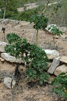 | | Buis des Baléares (Buxus balearica [Lamarck]) (boix / boj) | | Arbuste à feuilles ovales, brillantes, vertes, parfois rougeâtres ou jaunâtres. L’apex des feuilles peut être entaillé, caractéristiques qui permet d’identifier facilement cette plante. Son bois était utilisé pour sa dureté. | _small.jpg) _small.jpg) _small.jpg) | | Camélée à trois coques (Cneorum tricoccon) (olivella, escanyacabres / olivillo) | | Arbuste à feuilles allongées avec l’apex obtus souvent écope. Les fleurs sont de couleur jaune avec trois pétales et des fruits qui sont rouges à maturité ; les fruits ont trois parties, ce qui donne son nom à la plante (trois coques). | _small.jpg) | | Éphèdre fragile (Ephedra fragilis) (ginesta borda / belcho) | | Arbuste très ramifié. Feuilles en forme de petites écailles membraneuses qui placés sur les nœuds. Les fleurs sont de couleur jaunâtre. Cet arbuste vit principalement dans les sites côtiers, mais aussi à l’intérieur, dans des endroits pierreux. | _small.jpg) _small.jpg) | | Filaire à feuille étroite (Phillyrea angustifolia) (aladern de fulla estreta, fràngula, vern menuit / labiérnago blanco) | | Petit arbuste, très ramifié, avec des feuilles très étroites et allongées en forme de fer de lance, les feuilles sont coriaces et à bord entier. | _small.jpg) | | Genévrier de Phénicie (Juniperus phoenicea) (savina, sivina / sabina) | | Le genévrier rouge est un arbuste qui a des feuilles en forme d’échelles qui se chevauchent l’une sur l’autre, généralement disposées en quatre rangées. Les fruits sont sphériques. | _small.jpg) | | Fragon faux houx, petit-houx (Ruscus aculeatus) (cirere de Betlem, cireretes del bon pastor, boix mascle, boix marí, brusc, llorer bord, galzeran / brusco, arrayán morisco) | | Petit arbuste qui a remplacé les feuilles par des branches aplaties (raquettes); les vraies feuilles sont petites et discrètes ; fleurs solitaires verdâtres ou pourpres ; les fruits sont rouges et arrondis. | _small.jpg) _small.jpg) _small.jpg) | | Luzerne arborescente (Medicago citrina) (alfàls arbori) | | Arbuste très ramifié à grandes feuilles trifoliées ; les jeunes rameaux couverts d’une pilosité. Les fleurs sont jaune citron. | _small.jpg) _small.jpg) | | Nerprun des Baléares (Rhamnus ludovici-salvatoris [Chodat]) (llampúgol, llampúdol bord / aladierno balear) | | Le nerprun des Baléares est un arbuste endémique des îles Baléares que l’on trouve seulement sur les îles de Majorque, Minorque et Cabrera. Il doit son nom à l’archiduc Louis Sauveur de Habsbourg-Lorraine. Petit arbuste aux feuilles coriaces, d’un vert très foncé sur le dessus et beaucoup plus clair dessous. Les dents sont perpendiculaires à la marge. | _small.jpg) | | Oléastre (Olea europaea var. sylvestris) (ullastre / acebuche) | | L’oléastre, ou olivier sauvage, a des feuilles vert grisâtre dessus et presque blanches dessous, regroupés par paires sur les branches. Ces feuilles peuvent être très petites et arrondies sur les pousses basales ou lancéolées et fines, jusqu’à 8 cm de long, sur les branches supérieures. | _small.jpg) | | Pistachier lentisque, arbre au mastic (Pistacia lentiscus) (mata, llentiscle, llentrisca / lentisco) | | Arbuste qui devenir un arbre ; le lentisque est abondant dans les sous-bois de pins et d’yeuses. Il est caractérisé par des feuilles composées à folioles coriaces, et à l’odeur résineuse. | _small.jpg) _small.jpg) _small.jpg) | | Soude vraie (Suaeda vera) (salat vera) | | Arbuste très ramifié avec les branches supérieures recouvertes de petites feuilles linéaires et charnues. Soude. Différents textes parlent de l’obtention des cendres qui servaient probablement à fabriquer de la soude. Anciennement, on extrayait la soude de la combustion de différentes plantes appartenant aux genres Suaeda et Salicornia, entre autres. La soude était utilisée pour obtenir de l’eau de Javel et du savon. Un texte du XVIIIe siècle parle de la présence à Cabrera d’un four qui apparemment aurait servi pour fabriquer du verre à partir de cendres de soude et autres espèces similaires. | _small.jpg) _small.jpg) | | Withania frutescens (Withania frutescens) (bufera arbustiva, bufera, capseta) | | Arbuste très ramifié. Il vit dans le maquis de certains îlots de Majorque, d’Ibiza et de Formentera. Les feuilles sont ovales (plus large à la base) et tombent lorsque l’été arrive. Il fleurit en hiver et au printemps. | _small.jpg) _small.jpg) |