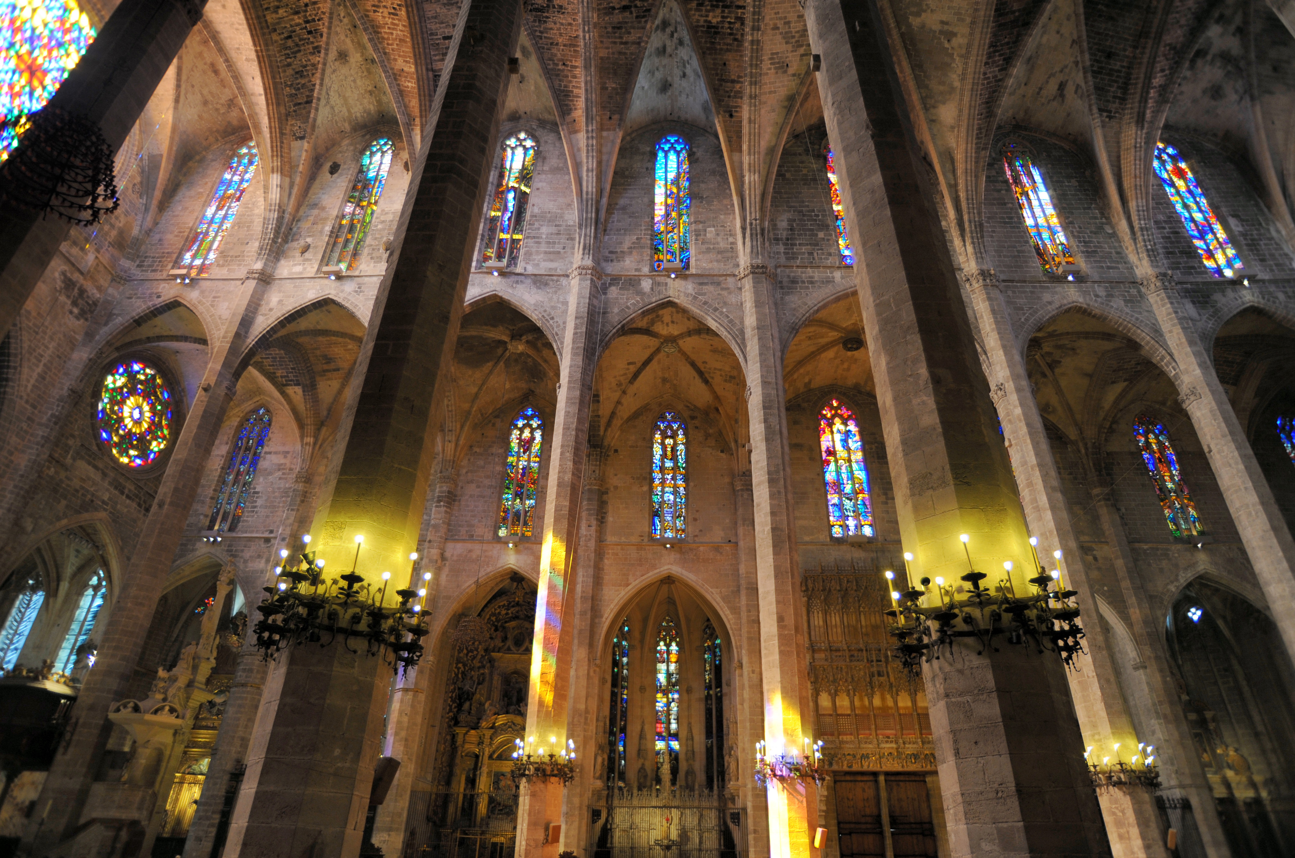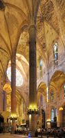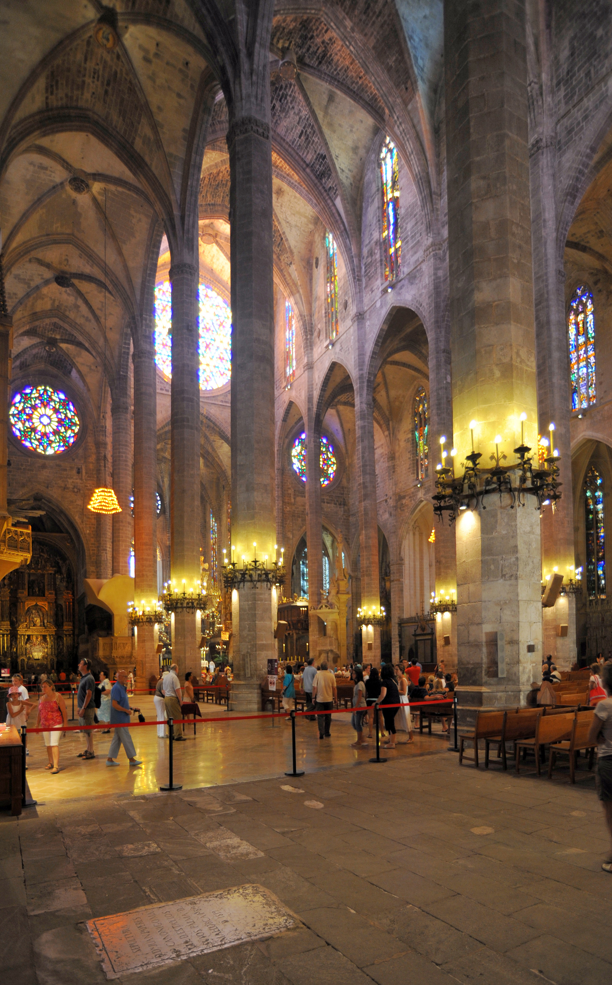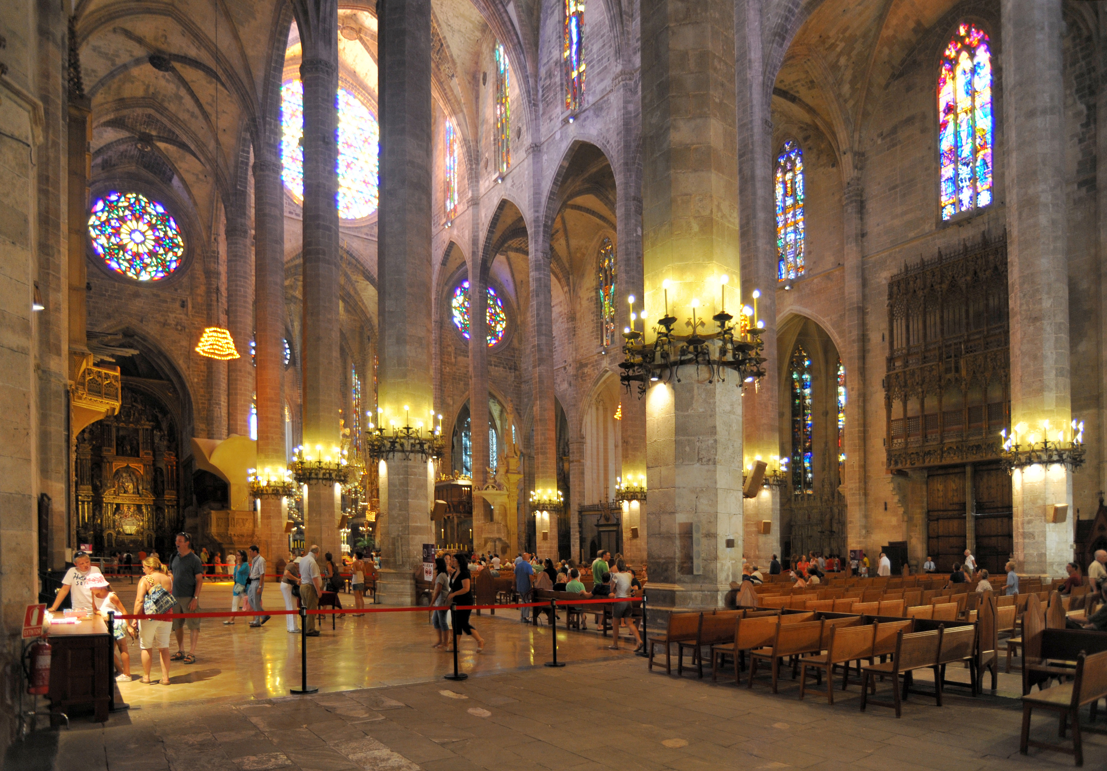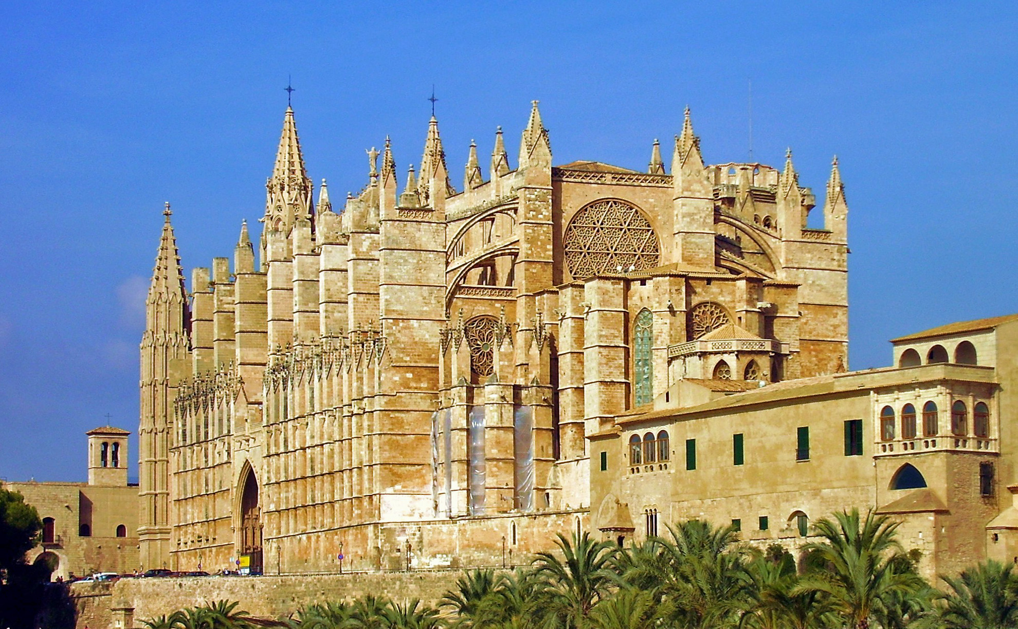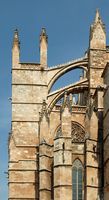 | | The Cathedral of Palma de Mallorca (Catedral de Palma de Mallorca) | _small.jpg) Palma Cathedral is a rectangular building with three naves, transept or without ambulatory. Each of the three naves has an apse, and the south aisle has an apse and two rectangular apses. The two aisles open chapels. Despite subsequent revisions, the cathedral - whose construction began in the early fourteenth century - is one of the finest works of gothic final; exception facade, replaced after the earthquake of 1851, and home parties.