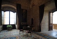 | The ceiling of this room is an arch whose keystone is adorned with the arms of Philip II of Spain. The room is currently decorated Tips Spanish tapestries of the seventeenth and eighteenth centuries, illustrating the battles against the Turks. |