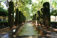 | The south facade of the Palace of the King features a beautiful gothic gallery with pointed arches, with a magnificent view over the bay of Palma. The west facade is decorated with a colonnade of arches and mullioned windows lanceolate. |