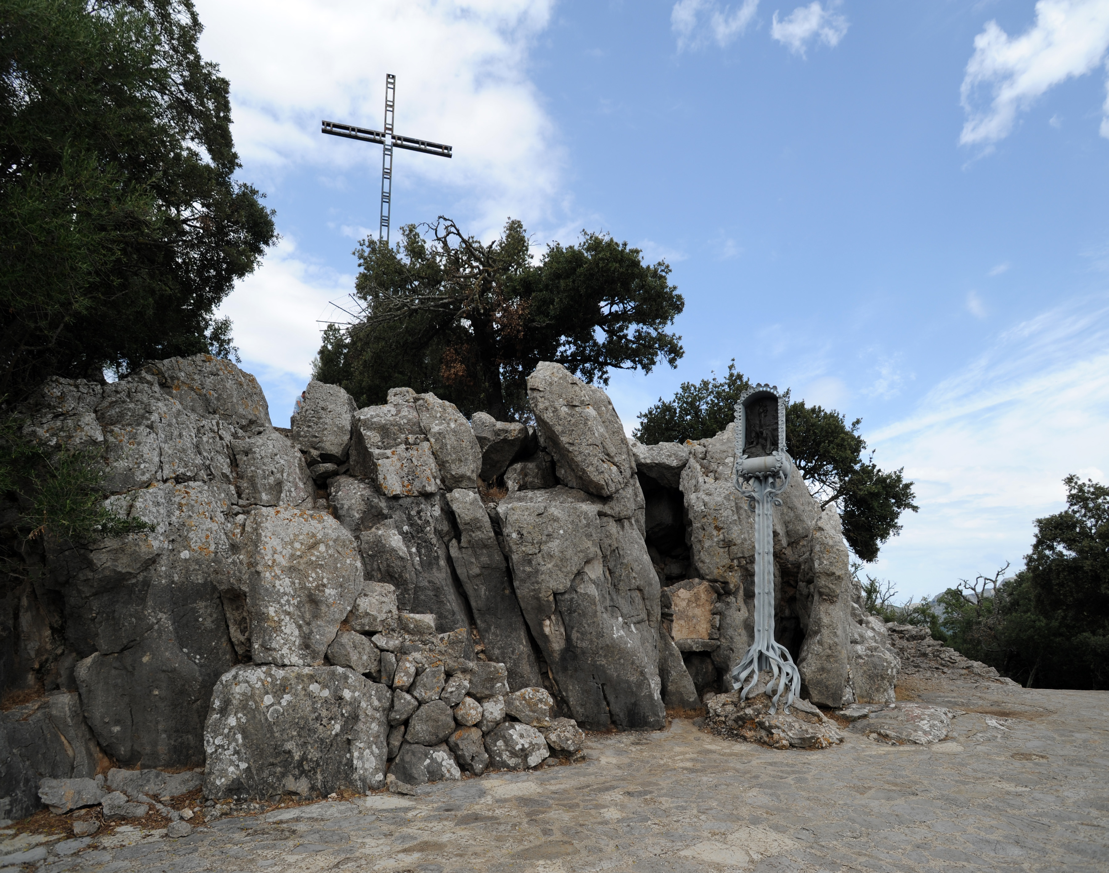 | La colline des Mystères (Pujol dels Misteris) | Sur le bord du chemin montant à la colline des Mystères se trouve un ensemble de cadrans solaires daté de 1991 (MCMXCI). En haut à gauche, un cadran indique les heures canoniales de la journée liturgique : Matutinum (Matines ou Vigiles), Laudes (Laudes), Prima (Prime), Tertia (Tierce), Sexta (Sexte), Nona (None), Vesperae (Vêpres) et Completae (Complies).- En bas à gauche, un cadran des heures babyloniques majorquines qui indique depuis combien d’heures le soleil s’est levé.