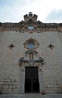 | La nouvelle hostellerie | _small.jpg) La construction de l’hostellerie moderne et de la Pension sont dus à l’impulsion et à l’encouragement de l’évêque Pere Joan Campins. Sa façade de style moderniste, à l’instar de la décoration intérieure, surprend par ses dimensions. Une fois les travaux achevés, un office de dédicace a été célébré par l’évêque Campins, le 17 Juillet 1914. | _small.jpg) Une statue de l’évêque Pere Joan Campins, l’un des grands mécènes du monastère, a été érigée en 1920 en face de la porte principale de l’église. | _small.jpg) Récemment, le Sanctuaire a été doté de plusieurs Centres d’Accueil pour tenir des réunions de catéchistes, de jeunes, et cetera, et une Maison de Spiritualité récemment restaurée. Lorsque les visiteurs d’un jour sont repartis, le calme et la quiétude enveloppe à nouveau le monastère, et les croyants peuvent trouver dans ce lieu de dévotion mariale un endroit de prière et de recueillement.Les Missionnaires sont à la disposition de tous ceux qui le désirent, pour leur aide pour prier, trouver la paix de Dieu et promouvoir leur vie spirituelle. Il existe aussi une Communauté de Sœurs Franciscaines qui s’occupe des besoins des pèlerins (téléphone : 00 34 971 517 053). |