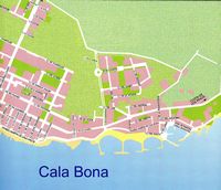 Cala Bona (« la bonne cale ») fait partie de la commune de Son Servera dans le comté du Levant, tout comme la station voisine, Cala Millor (« la meilleure cale »).