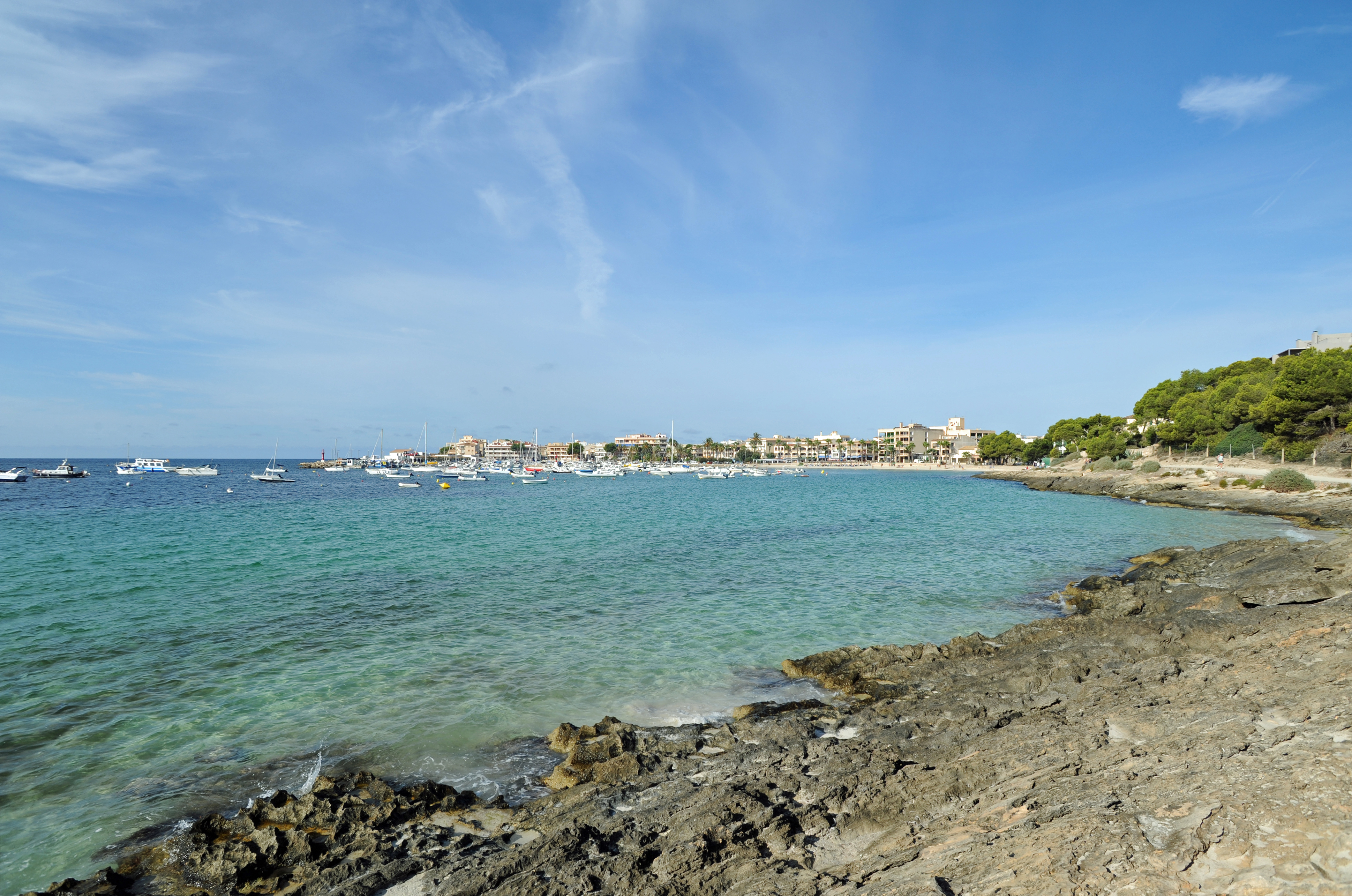 | La plage du port (Platja d’es Port) et la plage du Dolç (Platja d’es Dolç) | La Platja d’es Port se trouve tout à côté du port de pêche et de plaisance ; c’est une plage assez petite mais bien entretenue, très bien équipée et surveillée. Elle se trouve à proximité des restaurants et des cafés du port. De l’extrémité gauche de la plage du Port part une promenade, équipée de bancs, qui conduit à la plage d’Es Dolç.La plage d’Es Dolç (« la douce ») se trouve à 250 m de la station ; on peut y venir à pied, mais elle possède aussi un parking. La Platja d’Es Dolç est une plage de sable blanc et fin ; elle est équipée de chaises longues, de parasols et d’un bar. À environ 300 m de la plage d’Es Dolç se trouve la petite île de Na Guardis où subsiste des vestiges d’installations portuaires carthaginoises ; les épaves d’un navire marchand carthaginois et d’une galère romaine reposent, à quelques mètres de profondeur, entre Colónia et Na Guardis, et de nombreux plongeurs visitent ces épaves. |