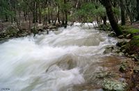 Les sources Ufanes (Fonts Ufanes / Fuentes Ufanes) | Les sources Ufanes sont l’un des phénomènes hydrologiques les plus intéressants de l’île de Majorque. Lors de pluies modérées, les eaux pluviales tombées sur le versant du Puig Tomir (1104 m d’altitude) s’infiltrent dans le sol et alimentent la nappe phréatique ; mais lors de pluies plus abondantes ou prolongées, le sol se sature, en raison des couches imperméables d’argile qui entravent la circulation des eaux souterraines ; les eaux pluviales sont alors obligées de circuler en surface. Il s’agit d’un phénomène de type « source vauclusienne », par référence à la source de la Fontaine de Vaucluse dans le sud de la France. Ce phénomène est intermittent en fonction de l’amorçage et du désamorçage des siphons des réseaux souterrains constitués par des cavités karstiques. Lorsque le phénomène se produit, les eaux des Fonts Ufanes jaillissent en bouillonnant – de façon spectaculaire – au milieu des bois de chênes du domaine agricole de Gabellí Petit. Les eaux des Fonts Ufanes grossissent alors le cours de la rivière de Sant Miquel, qui arrose la plaine de Sa Pobla avant de se perdre dans la lagune de S’Albufera, près de Platja de Muro, sur la côte nord de l’île. Le débit de la rivière de Sant Miquel, qui est en moyenne de 1 à 3 m³/s, peut atteindre jusqu’à 100 m³/s.