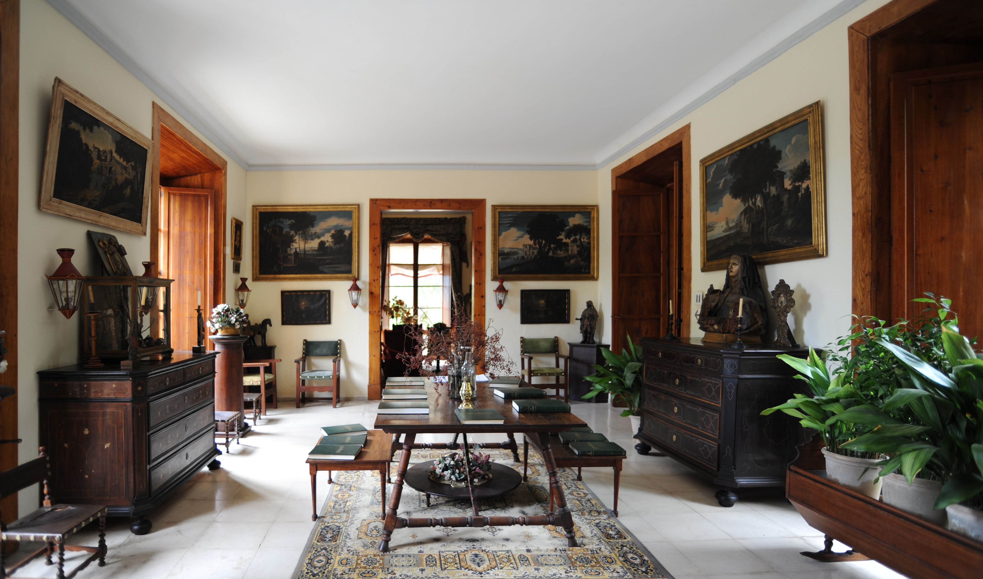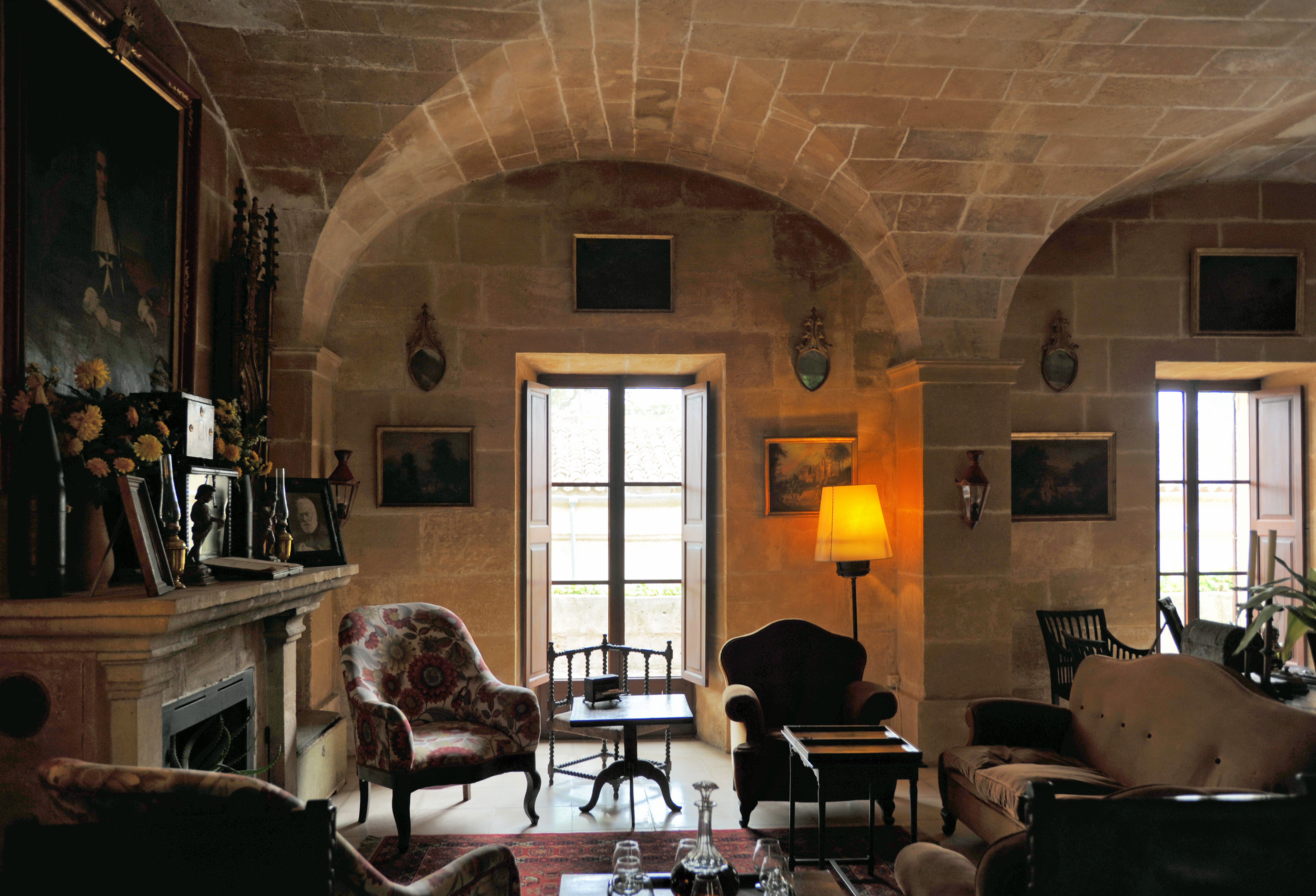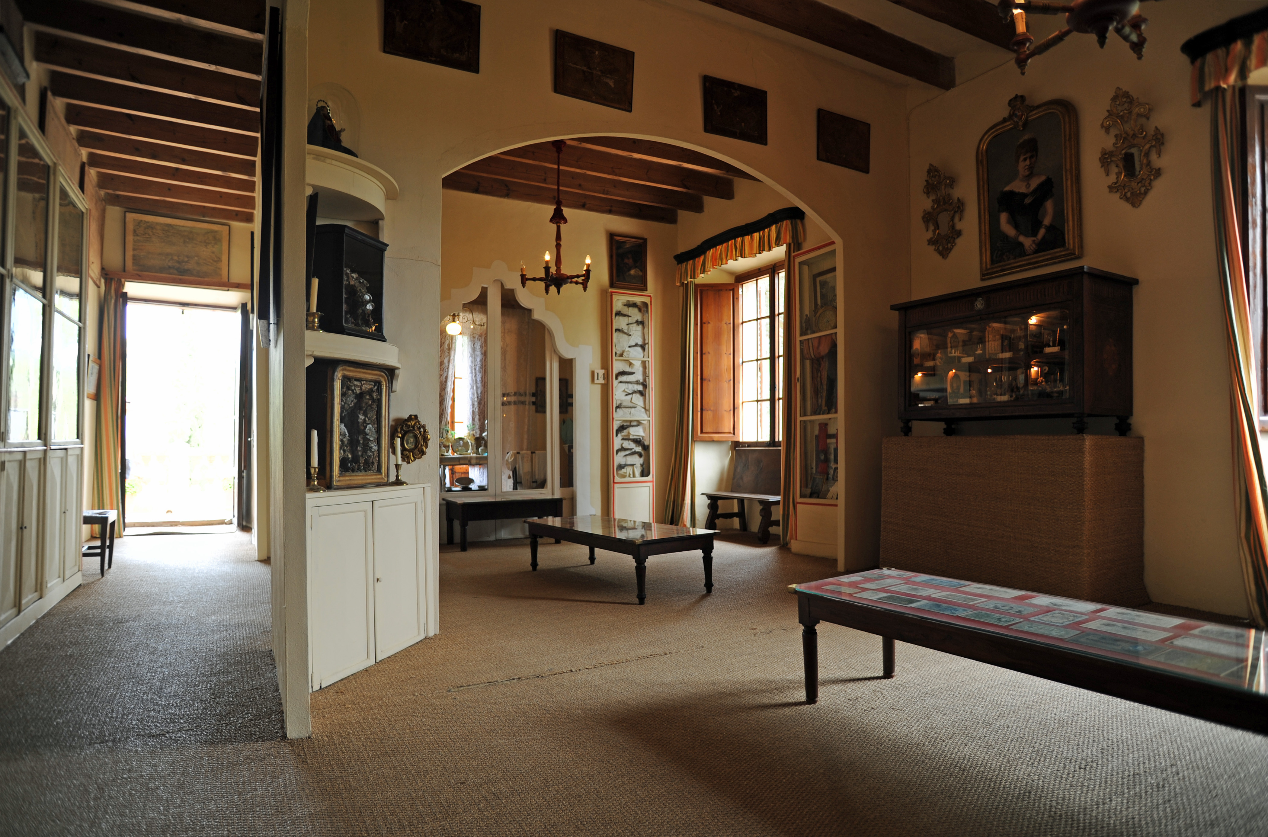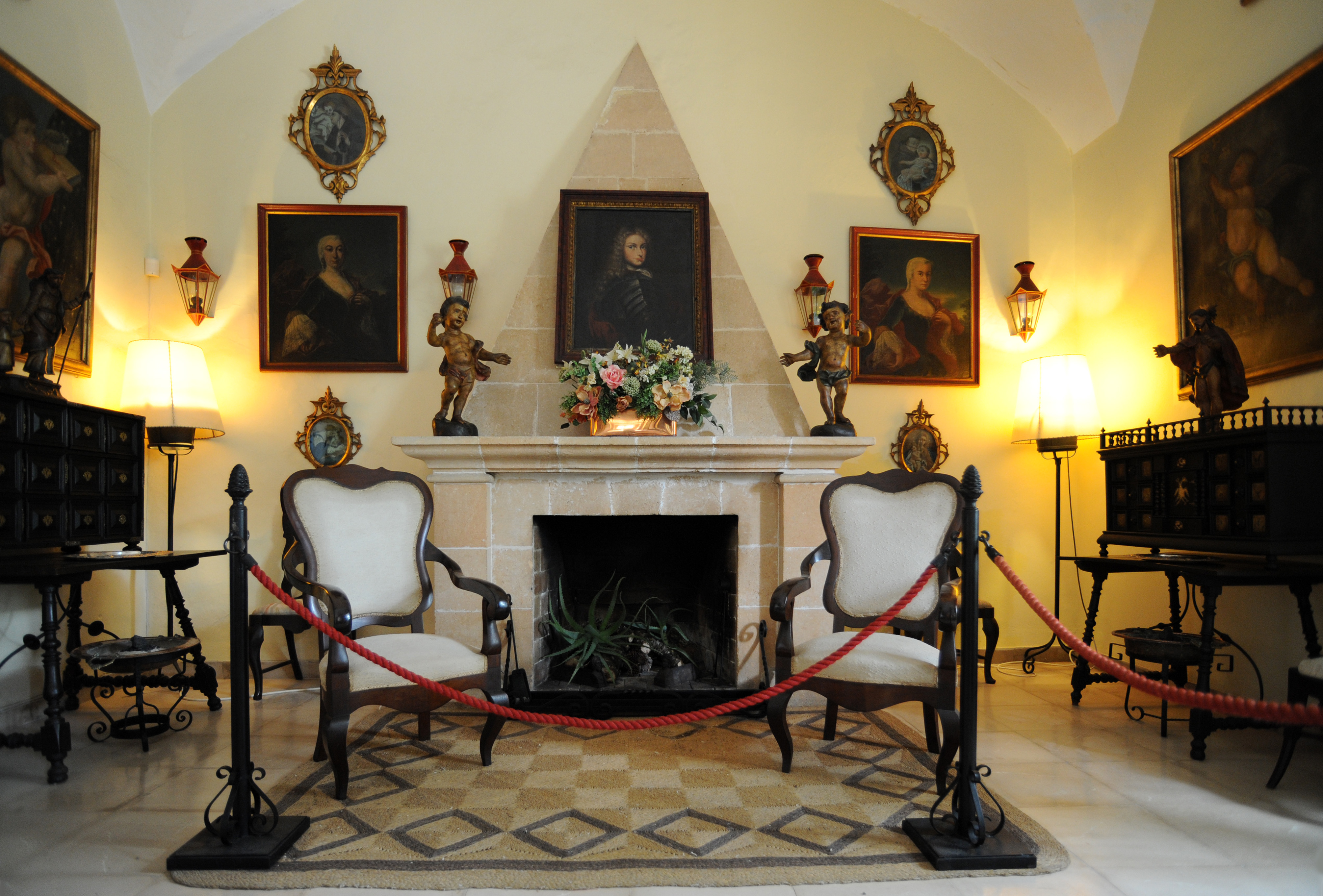 | Le bureau du maître | | On passe ensuite dans le bureau du Maître, le centre du pouvoir du propriétaire, une salle carrée, avec deux nefs voûtées, avec deux sections dans chaque nef et un pilier central de section carrée. | _small.jpg) _small.jpg) _small.jpg) _small.jpg) _small.jpg) | | Le bureau dispose d’une cheminée entourée d’accueillants fauteuils qui invitaient aux causeries masculines propres à l’époque. Au-dessus de la cheminée, le portrait d’un homme portant la croix de Malte que l’on identifie comme Ramon Despuig i Martínez de Marcilla, Grand Maître de l’Ordre de Malte en 1737. | _small.jpg) _small.jpg) _small.jpg) _small.jpg) _small.jpg) _small.jpg) | | On remarque également le bureau et un portrait de l’évêque Bernat Nadal encadré d’une collection de cannes. | _small.jpg) _small.jpg) _small.jpg) |