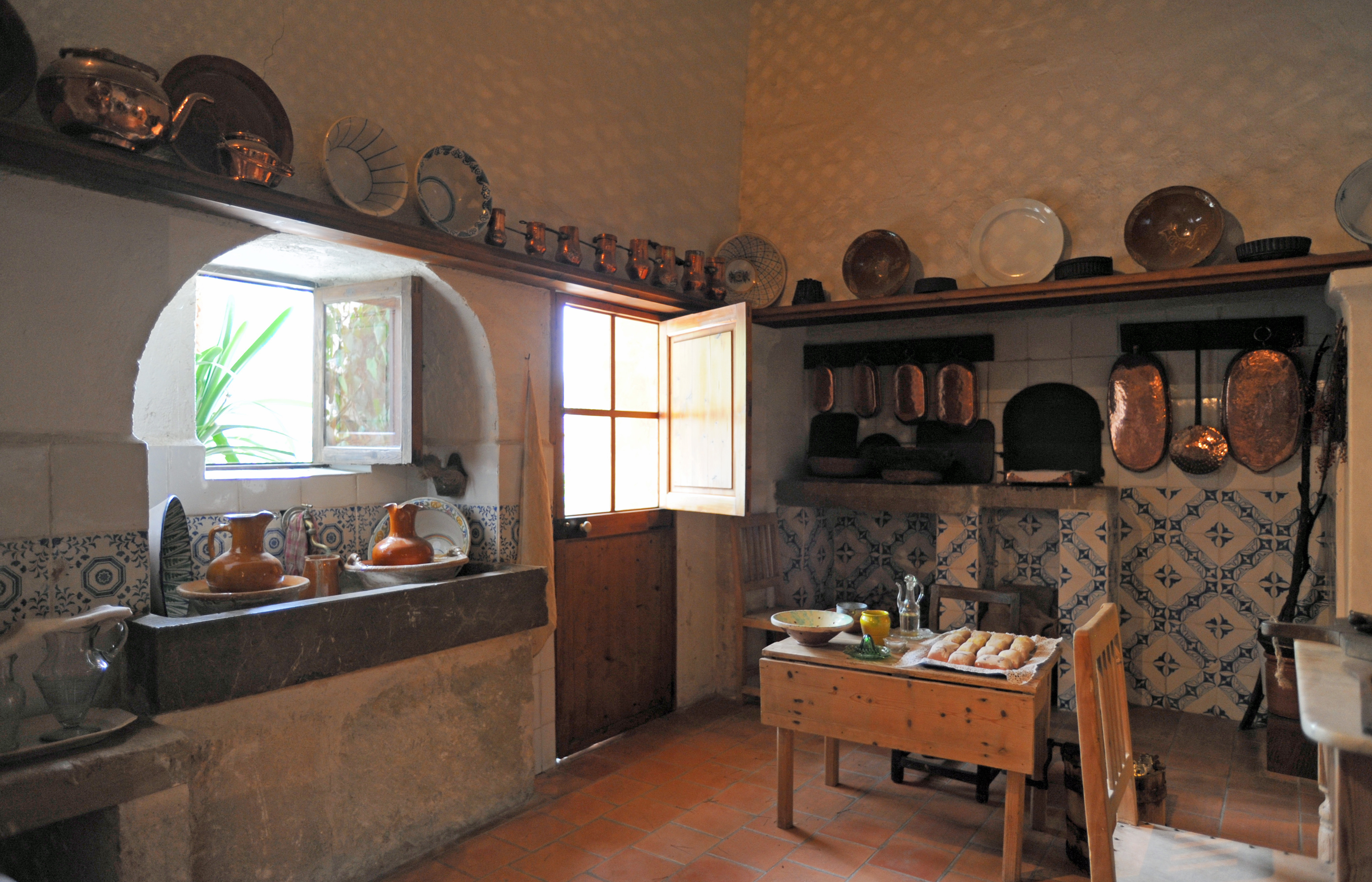 | | La cuisine des ouvriers agricoles | | Le rez-de-chaussée du logement du régisseur est divisé en deux travées par une arche : dans la première travée se trouve une cuisine typique de ferme majorquine, avec une grande cheminée. | _small.jpg) _small.jpg) _small.jpg) |