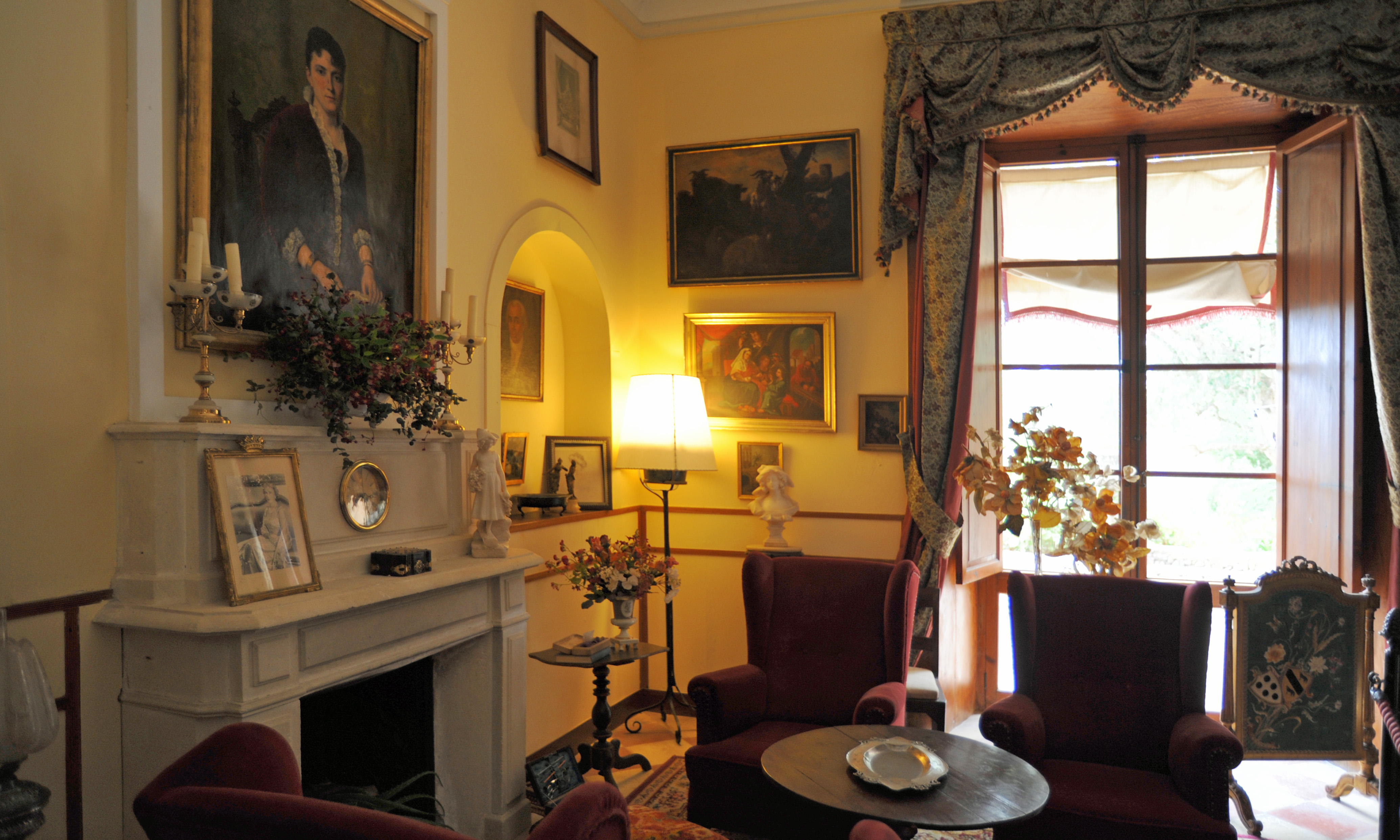| La salle des archives | | Une petite pièce sur la gauche de la salle de chasse abrite les archives de la succession, avec des papiers et des documents des XVIIIe et XIXe siècles, principalement. | _small.jpg) _small.jpg) _small.jpg) |