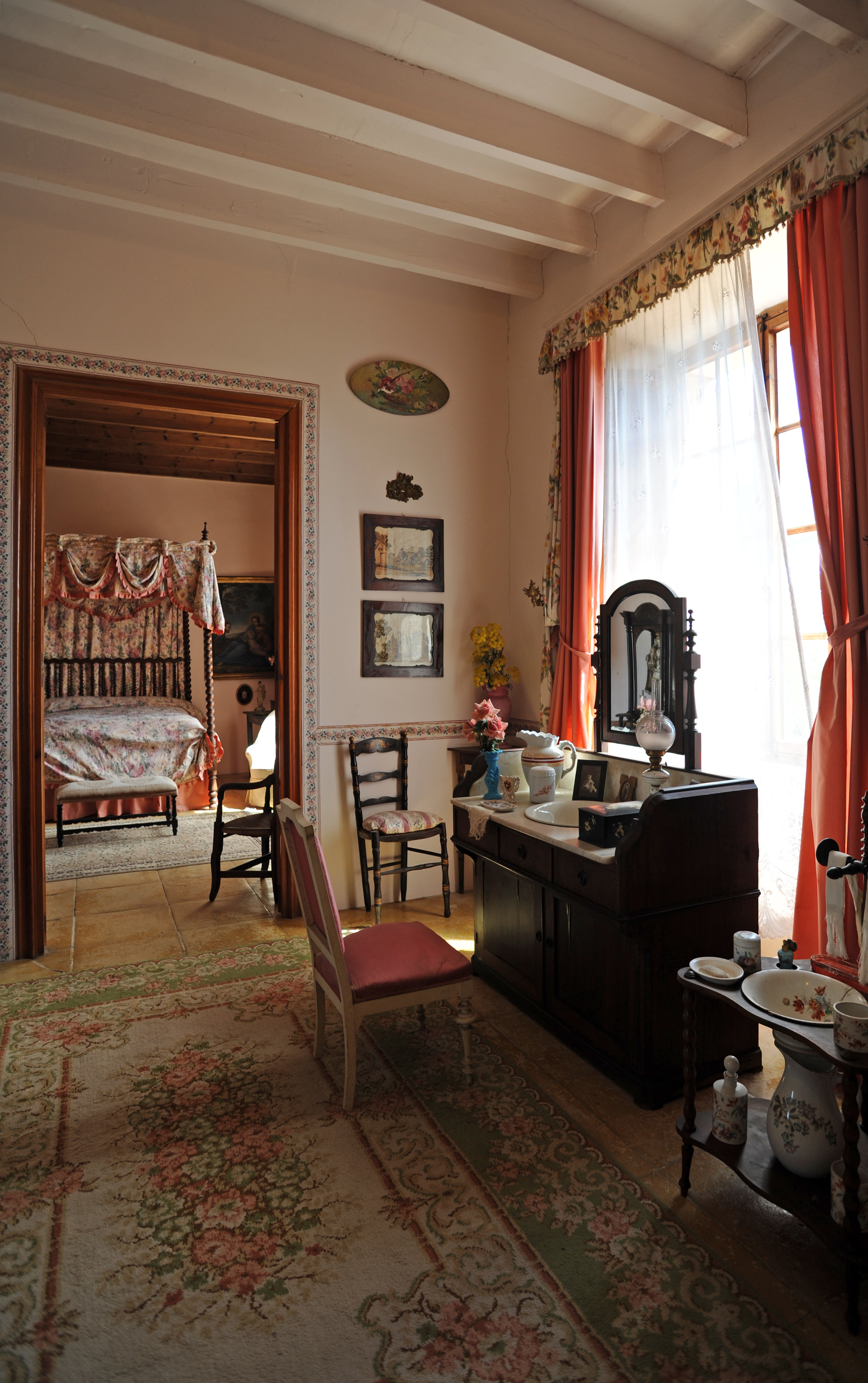 | | | La garde-robe de Madame | | À gauche du vestibule, la garde-robe de Madame contient une belle commode à linge et une peinture qui est une copie du portrait de la comtesse de Ribas réalisé par l’artiste Antoni Ribas. | _small.jpg) _small.jpg) _small.jpg) _small.jpg) | | De la garde-robe de Madame, une porte mène dans la chambre à coucher. | _small.jpg) _small.jpg) _small.jpg) |