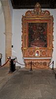 Under this platform - the side of the nave of the Gospel - a low arch opened and closed by a gate allows to see the remains of a ribbed vault at the base of the church’s bell tower. | _small.jpg) The Church of Our Lady of Regla houses a statue of the Virgen de Regla, one of the invocations of the Virgin Mary, which might have been brought from Mexico. The patron saint of the city of Pájara is also venerated in the town of Regla, in the province of Havana in Cuba. Beautiful gilded Baroque altars were completed in 1785. Other notable works of religious art of the church Nuestra Señora de Regla is an altarpiece with paintings and sculpture in the round, an altar with oil painting on canvas depicting the Souls, a sculpture of a Ecce Homo, a font carved in stone and painted, baptismal font carved in stone, an altar of Our Lady of Sorrows, a painting of St. John the Evangelist, an oil painting representing God the Father, a statue of St. Anthony of Padua, a statue of Jesus Savior, Christ Crucified, a carved pulpit in polychrome wood and gold, a silver monstrance, a votive lamp.