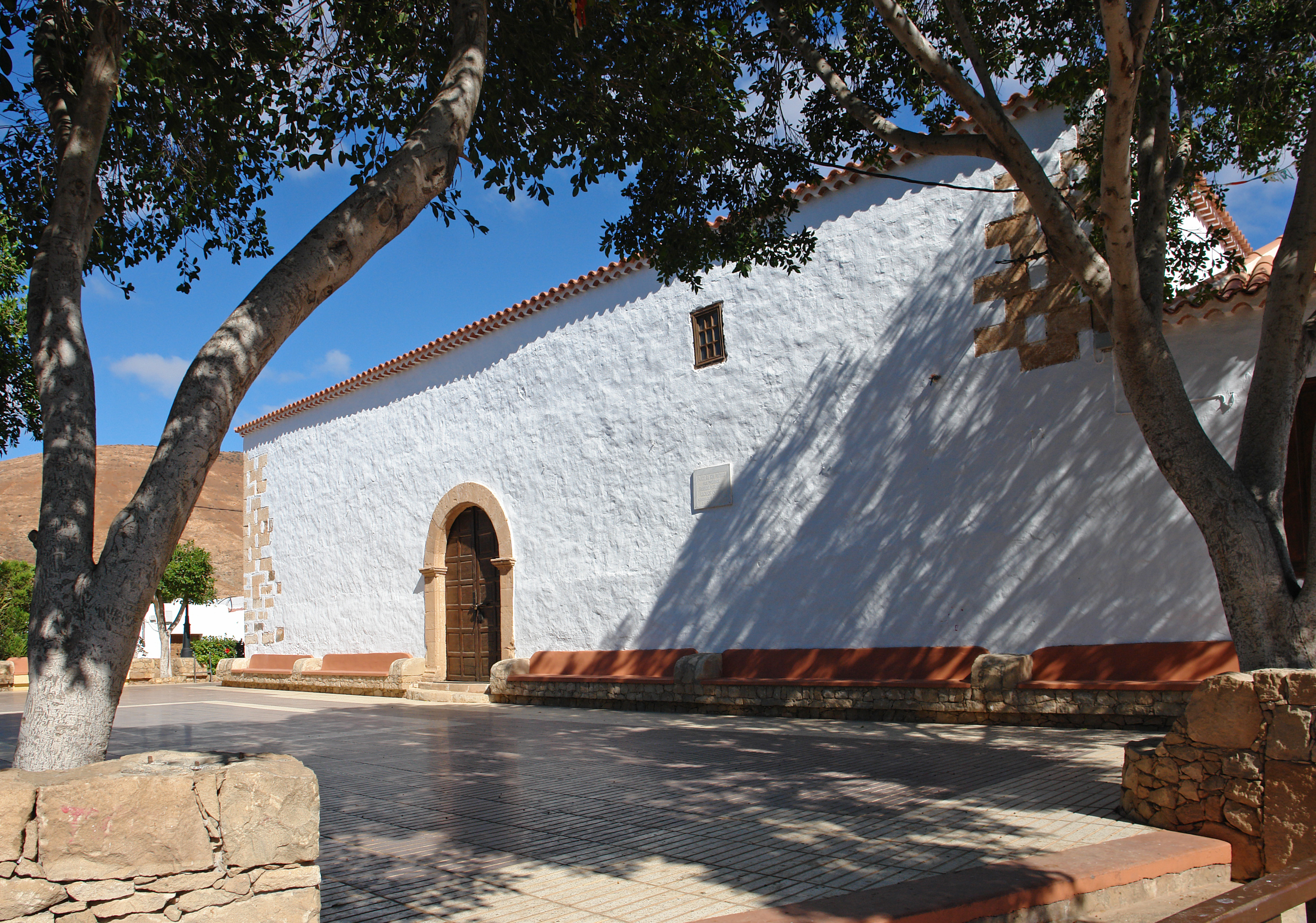 | The church of Our Lady of Regla is located on the Plaza de Nuestra Señora de Regla; it is surrounded by a beautiful garden with mature trees that mask the modern buildings of the city hall and cultural center. These large trees also shade the facade of the church, and it is better to come in the late afternoon when the sun illuminates the beautiful reddish stone of the Gospel portal.The church is open daily from 11 am to 13 pm and from 17 am to 19 pm. A Mass is given on Sunday at 19 pm. The interior is quite dark, lit only by two small windows at the entrance to the nave of the Epistle - on the right - there is a timer that allows pay for illuminating the inside by placing a coin one euro. The feast of the patron saint of the city, Our Lady of Regla, is celebrated around June 2 The ceremonies last for several days; the day before, around midnight, a large fireworks and fired; in the evening, around 20 pm, a procession through the streets. | The Monument of Natural of Ajuí (Monumento Natural de Ajuí) | | The Natural Monument of Ajui is the oldest place of the Canary Islands. The other islands, as well as the American and African continents, had not yet separated. Some of these rocks are composed of fossilized marine sediments contain fossils of marine animals. | The Natural Monument of Montaña del Cardón | _small.jpg) The Natural Monument of Montaña del Cardón has an interesting endemic flora. | The village of Toto | Toto is an agricultural village of fewer than 300 inhabitants, located 3 km east of Pájara, along the FV-30 road between Pájara and Tuineje. It is a small oasis of greenery, well irrigated, at the foot of arid mountains. Toto has a chapel built in the second half of the eighteenth century and completed in 1795. The chapel of St. Anthony of Padua (Ermita de San Antonio de Padua) comprises a single nave, but almost identical portal, one located in the front, the other in the wall of the Epistle to the right; both portals are topped with a round arch and built in the same light stone adorning the corners of the building. The bell tower, crowned with a pinnacle flanked by two decorative scrollwork, is placed on the upper left part of the facade. The vestry is leaned against the church wall bedside.
