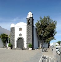 | The Church of St. Bartholomew (Iglesia de San Bartolomé) | The parish church of San Bartolomé was built in the late eighteenth century near the old chapel became too cramped for the population that had increased significantly. The construction was financed by public subscription at the initiative of Francisco Guerra Clavijo y Perdomo and his son Cayetano, who became its first pastor. Construction lasted from 1779 to 1783; in 1796 the church became the parish church of the new independent parish of San Bartolomé.The facade has a portal made of basalt stones; it is topped by a round arch. The two angles, quite massive, faceplate are also built of volcanic stone. At the top of the right corner (wall of the Epistle says) was built a tower in the nineteenth century; this tower is topped by a small dome whitewashed. The interior of the church has a single nave, a Latin cross, covered by a wooden ceiling, Mudejar, supporting a gable roof. This ceiling - wooden Tenerife - had been painted blue in 1901, but in 1971 it was decided to restore its natural look of wood. The choir and transept chapels are covered with hipped roofs. In the chapel of the Epistle, the Chapel of Sorrows (Capilla de Los Dolores), is the tomb of the founder of the church, the Mayor Guerra, and his wife. We also notice the beautiful altarpiece of the main altar. | _small.jpg) _small.jpg) _small.jpg) | _small.jpg) _small.jpg) _small.jpg) | The house of the Perdomo (Casa Perdomo) | _small.jpg) La Casa Perdomo (point F on the map) is a fine example of traditional Canarian architecture, including a chapel, the Ermita de Nuestra Señora del Pino. After a winery (bodega), it now houses the Ethnographic Museum Tanit. | _small.jpg) _small.jpg) _small.jpg) | Tanit Ethnographic Museum (Museo Etnográfico Tanit) | | Go to the Ethnographic Museum Tanit. | The home of Mayor Guerra (Casa del Mayor Guerra) | | La Casa del Mayor Guerra was built in 1765 by Francisco Tomás Guerra Clavijo y Perdomo, a descendant of the conqueror of Gran Canaria, Don Lope Fernández de la Reguera y Guerra. Born in 1733, he was appointed Military Governor of Lanzarote in 1793, along with the Mayor of San Bartolomé: history refers to as Mayor Guerra. His son, Don Cayetano Guerra, was the first parish priest of San Bartolomé. La Casa Guerra is a vast rectangular mansion; above the entrance we see the crest of the wife of Mayor Guerra, Doña María Andrea Perdomo. Inside you can visit rooms furnished with period furniture and permanent exhibitions devoted to the history of San Bartolomé, from the time of aboriginal hamlet Ajei until the present time. In the beautiful gardens is a circular tank of exceptional size, fed by canals that brought water from the mountains.