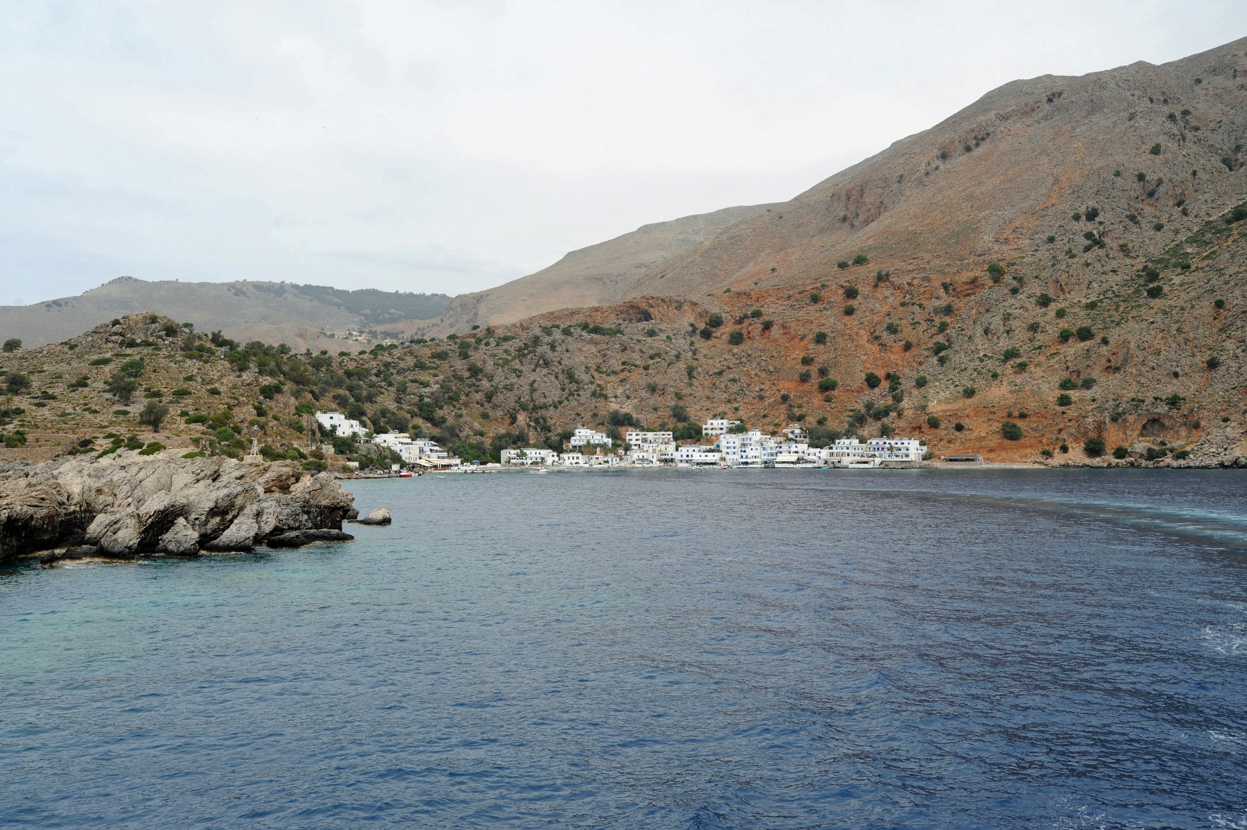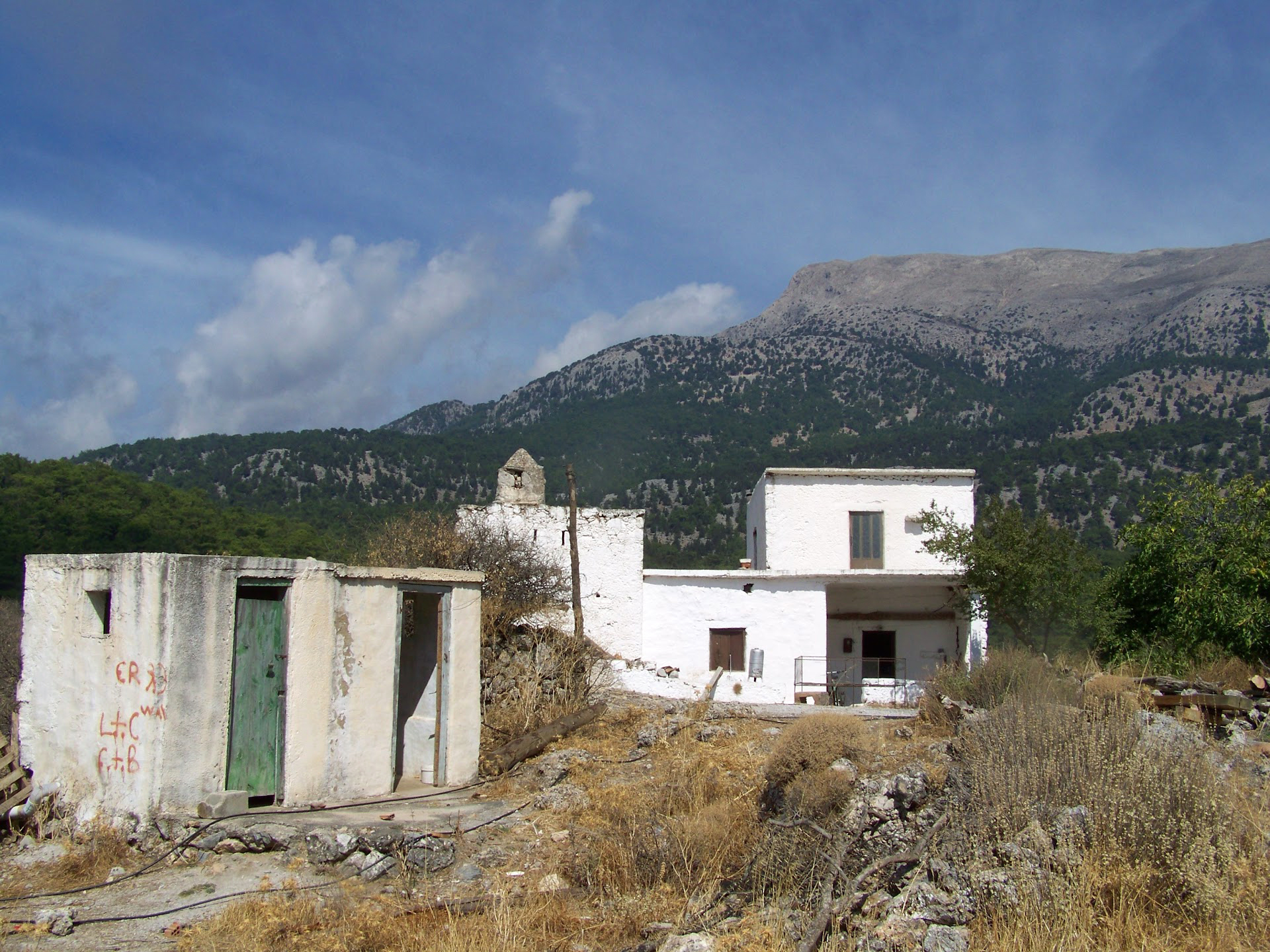 | Le village d’Agios Ioannis (Άγιος Ιωάννης / Ágios Ioánnis) | Agios Ioannis est un hameau situé au piémont sud des Montagnes Blanches, à environ 790 m d’altitude. À environ 2 km au nord du hameau se trouve le plateau de Kroussia (οροπέδιο Κρούσια), situé à environ 1 240 m d’altitude ; le plateau dispose de plusieurs points d’eau où le bétail peut s’abreuver. Au nord du plateau se dressent le mont Koutsakas (Κούτσακας) (1 646 m) et le mont Zaranokéfala (Ζαρανοκεφάλα) (2 100 m) ; le mont Pachnès (Πάχνες) (2 452 m), le plus haut sommet des Montagnes Blanches, se trouve à environ 7,5 km au nord du hameau. Agios Ioannis n’est qu’à 2 km de la côte de la mer de Libye, une côte située près de 800 m plus bas.Agios Ioannis se trouve au bout de la route de Chora Sfakion à Agios Ioannis, à 20 km à l’ouest de Chora Sfakion, et à 5 km à l’ouest d’Aradaina, mais il faut compter plus de 30 min de conduite pour atteindre Agios Ioannis. Le hameau n’est accessible par une route à revêtement que depuis 1986, quand a été construit le viaduc d’Aradaina ; avant cette date, Agios Ioannis était un hameau enclavé : il fallait emprunter un sentier muletier en zigzag pour franchir les gorges d’Aradaina, ce qui rendait les déplacements très difficiles. Agios Ioannis compte une trentaine d’habitants, mais la localité est le chef-lieu d’une communauté locale du dème des Sfakia (Κοινότητα Αγίου Ιωάννου) qui comprend aussi le village abandonné d’Aradaina ; une autre localité de la communauté, Sterni (Στερνί), située à environ 1 km au nord de la sortie des gorges d’Aradaina, a été désertée depuis la fin du XIXe siècle ; il n’en reste que des ruines et son ancienne église, Saint-Basile (Άγιος Βασίλειος). La localité devrait son nom à une ancienne église byzantine isolée, dédiée à saint Jean, l’église d’Agios Ioannis, qui est ornée d’icônes et de fresques datant du XIVe siècle. Parce qu’Agios Ioannis (Saint-Jean) est un toponyme très commun en Crète, on précise parfois Saint-Jean de La Canée (Άγιος Ιωάννης Χανίων) ou Saint-Jean des Sfakia (Άγιος Ιωάννης Σφακίων). Il existe notamment un village d’Agios Ioannis dans la vallée d’Amari. Le village d’Agios Ioannis aurait été fondé à l’époque byzantine par des habitants de l’ancienne cité de Finikas ; c’était un village de capitaines de marine, notamment les Vardinogiannis (Βαρδινογιάννης). Ce sont les descendants de Giannis Vardinogiannis, né à Agios Ioannis, qui ont financé le viaduc d’Aradaina qui a permis de désenclaver le village ; certains des dix enfants de Giannis Vardinogiannis, nés à Épiskopi près de Réthymnon, notamment Vardis, Pavlos, Nikos, Georgios et Theodoros, ont constitué une fortune considérable dans divers secteurs économiques, notamment le transport maritime, le pétrole et la politique.