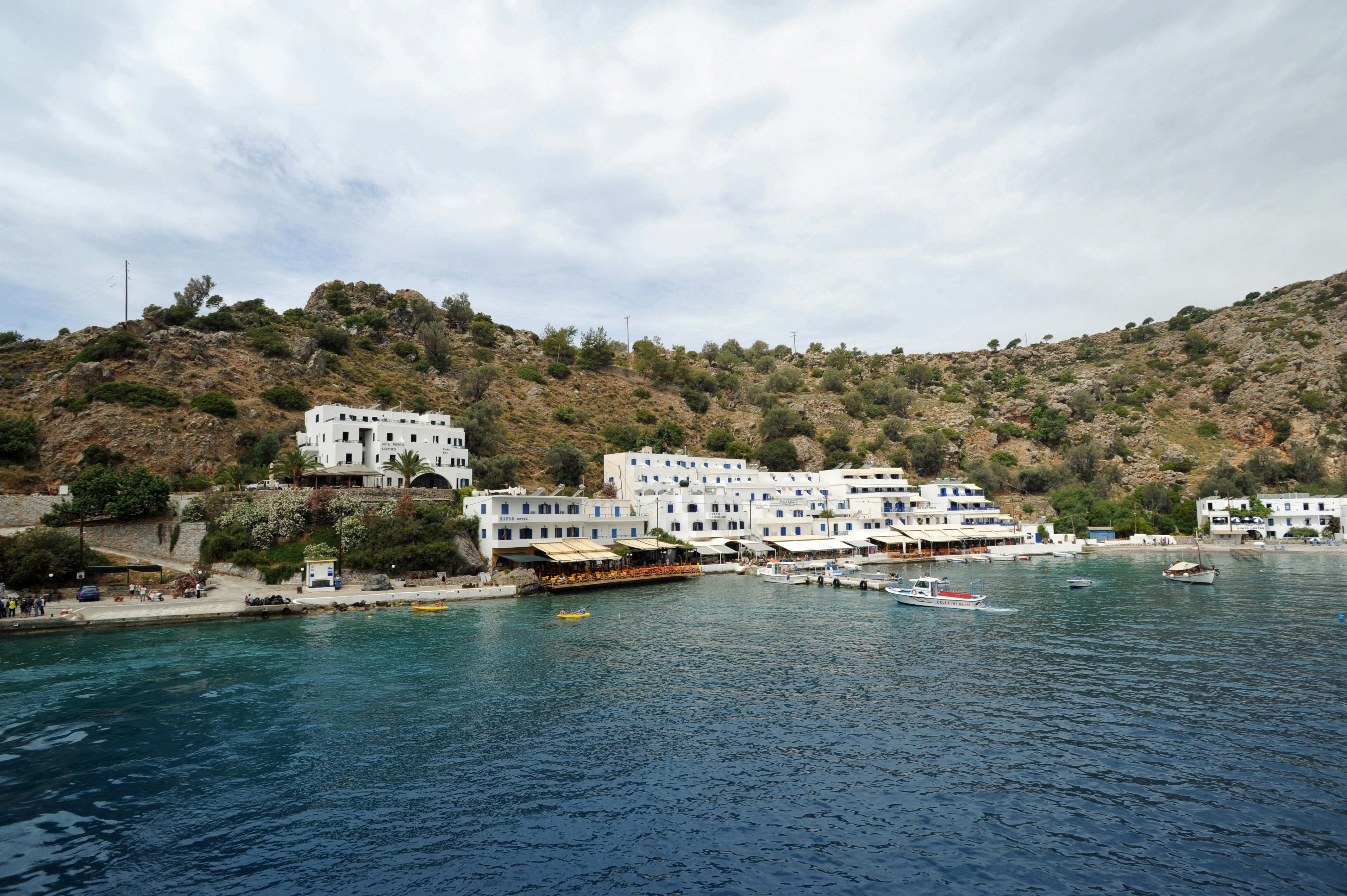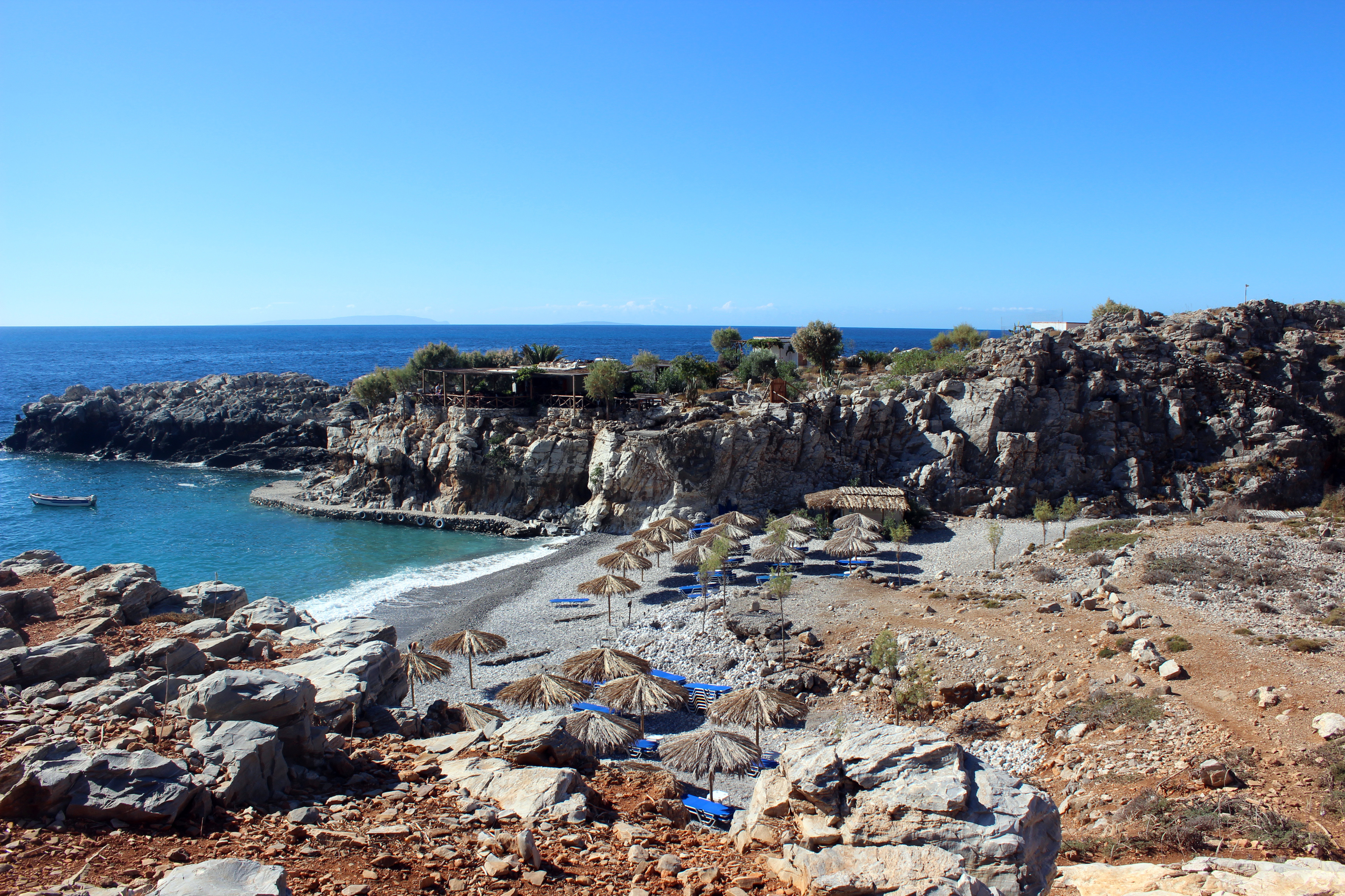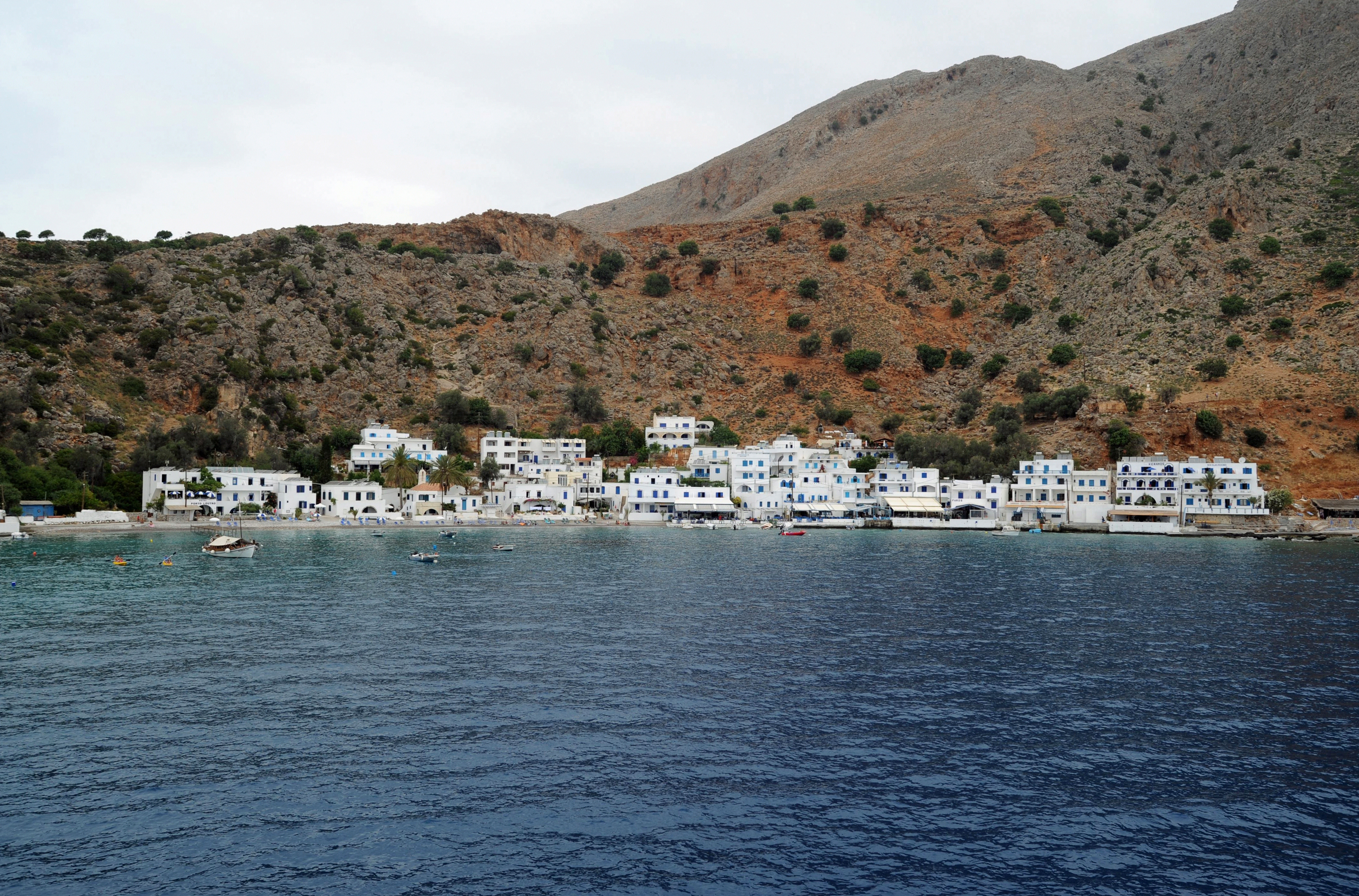 | La plage de Marmara (παραλία Μάρμαρα / paralía Mármara) | La plage de Marmara est une plage de taille modeste mais située dans un très bel environnement, à la sortie des gorges d’Aradaina. Comme son toponyme l’indique, la plage est située sur le socle de marbre de l’île de Crète, socle mis à nu par le décapage de la nappe supérieure de calcaire en plaques ; le mot Marmara signifie « les marbres » (μάρμαρο, le marbre, au pluriel μάρμαρα). La plage de Marmara est aussi connue sous le nom de « plage de Dialiskari » (Διαλισκάρι).La plage des Marbres se trouve à seulement 2 km à l’ouest, à vol de corbeau, de la station balnéaire de Loutro, mais aucune route ne permet d’y accéder en automobile. L’accès à pied à la plage est lui-même plutôt difficile : depuis Loutro, il est possible de suivre l’itinéraire de la section 14, puis de la section 13, du sentier européen de randonnée E4 pour atteindre la plage de Marmara, mais ce parcours emprunte un sentier en corniche, à une grande hauteur au-dessus de la baie de Finikas ; ce trajet est déconseillé aux personnes sujettes au vertige et il est exposé plein sud entre la roche et le précipice. Il faut compter entre 1 h 30 min et 2 h de marche depuis le port de Loutro, en passant par le village de Finikas et la plage de Lykos ; depuis Chora Sfakion, il faut compter plus de 4 h de marche. Une possibilité existe de venir en automobile jusqu’au village de Livaniana (Λιβανιανά) par une petite route en épingle à cheveux qui prend à gauche 500 m avant le viaduc d’Aradaina ; après Livaniana la petite route continue en direction de la plage de Lykos ; dans le dernier virage on peut trouver une aire de stationnement d’où par un sentier en direction de la plage de Marmara ; ce sentier rejoint le sentier de randonnée E4 que l’on peut prendre en direction de l’ouest ; ce trajet limite la marche à pied à une distance d’environ 600 m. On peut remonter les gorges d’Aradaina et redescendre depuis le village d’Aradaina vers Livaniana, en 8 km, pour récupérer sa voiture ; à Livaniana se trouve une petite taverne accueillante. Aller à Livaniana avec Google Maps (35.200930, 24.059955). La plupart des vacanciers séjournant à Loutro préfèrent utiliser les bateaux-taxis qui relient, pendant la saison touristique, la station balnéaire à la plage de Marmara, en environ 15 min et pour environ 7 € ; l’embarcadère se trouve sur le côté ouest de la plage, au pied de la taverne. Les marcheurs qui viennent à pied à la plage de Marmara empruntent plutôt le sentier de randonnée qui suit le fond des gorges d’Aradaina ; depuis le village d’Aradaina, il faut compter environ 1 h 30 min pour parcourir les 3,5 km de la longueur des gorges ; la plage de Marmara est une halte appréciée par les randonneurs, après la descente des gorges, avant le rejoindre Loutro en bateau. On peut aussi venir à la plage de Marmara en bateau-taxi et remonter les gorges d’Aradaina ou une partie des gorges, mais les premiers bateaux-taxis sont assez tard dans la matinée. Aller à la plage de Marmara avec Google Maps (35.196591, 24.058196). Malgré ces difficultés d’accès, la plage de Marmara est souvent bondée, en période estivale, car la plage est exigüe, avec une longueur d’environ 45 m et une largeur moyenne de 10 m ; le flot des vacanciers amenés par les bateaux-taxis sature rapidement la plage. Il s’agit d’une plage de gravier et de galets grisâtres charriés par le torrent des gorges d’Aradaina, pas particulièrement confortable ; en revanche, dans cet environnement rocheux, les eaux sont très limpides et tranquilles, avec la couleur turquoise caractéristique créée par la présence de carbonate de calcium dissous.