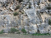 Aller à l’escarpement de Kroussonas avec Google Maps (35.220707, 24.964004). La faille du « Détachement Crétois » se situe au-dessus de la localité (point C4 sur la carte géologique du Psiloritis, n° 54 sur la carte du Géoparc du Psiloritis |