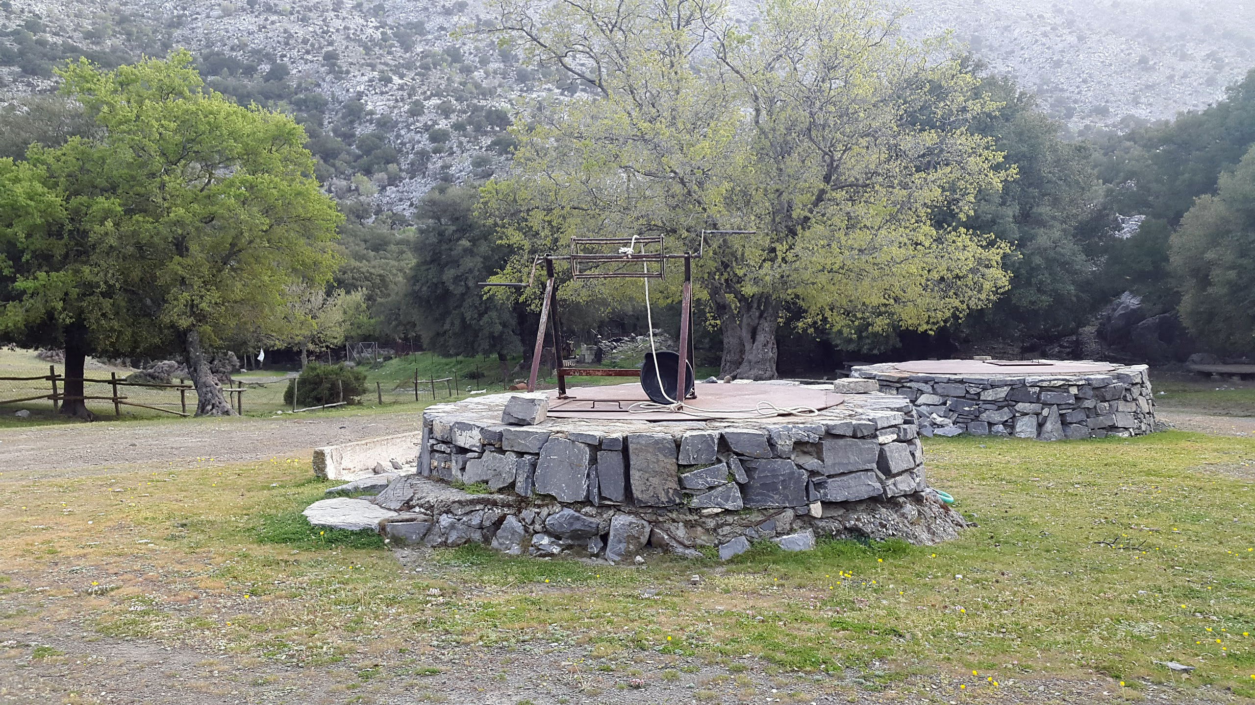 | | Le plateau de Livadi (οροπέδιο των Λιβαδιών / oropédio ton Livadión) | | Le plateau de Livadi est un poljé, c’est-à-dire un plateau karstique, qui se trouve à 1,5 km à l’ouest du village de Kroussonas ; il domine le village depuis une altitude de 620 m en moyenne. Le toponyme du plateau signifie « le plateau des pâturages », du mot grec « λιβάδι, pluriel λιβάδια » qui signifie « pré, prairie, pâturage », du grec « λιβάς », « petit ruisseau » ; cette étymologie évoque la présence d’eau ; le plateau dispose en effet d’une eau souterraine abondante. Le plateau est aussi nommé Krousaniotiko Livadi (Κρουσανιώτικο Λιβάδι), c’est-à-dire « la prairie de Kroussonas ». Le plateau de Livadi est réputé pour ses arbres fruitiers, tels que pommiers, poiriers et noyers, et ses activités agricoles et d’élevage. Le plateau de Livadi est situé entre deux failles : la faille de Kroussonas - Tylissos et la faille du « Détachement crétois ». La faille de « Tylissos-Kroussonas » est d’une grande importance hydrogéologique pour l’ensemble de la région ; cette faille et celles qui lui sont parallèles agissent comme des barrages pour l’eau souterraine qui provient des montagnes, formant ainsi des réservoirs d’eau souterrains. Grâce à des forages d’eau, Héraklion et de nombreux autres villages peuvent satisfaire leurs besoins en eau.