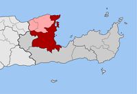 | | La commune d’Agios Nikolaos occupe la partie nord-ouest de la province du Lassithi ; la côte nord de la commune est baignée par la mer de Crète, depuis le golfe de Malia jusqu’au golfe de Mirabello ; la côte orientale par le golfe de Mirabello. La commune d’Agios Nikolaos (Δήμος Αγίου Νικολάου) comprend trois cantons : le canton d’Agios Nikolaos à l’est et au sud, le canton de Néapolis au nord, riche en monastères, dont le célèbre monastère d’Aréti, et le canton de Vrachasi au nord-ouest, avec les petites stations balnéaires de Sissi et de Milatos, et sa grotte.