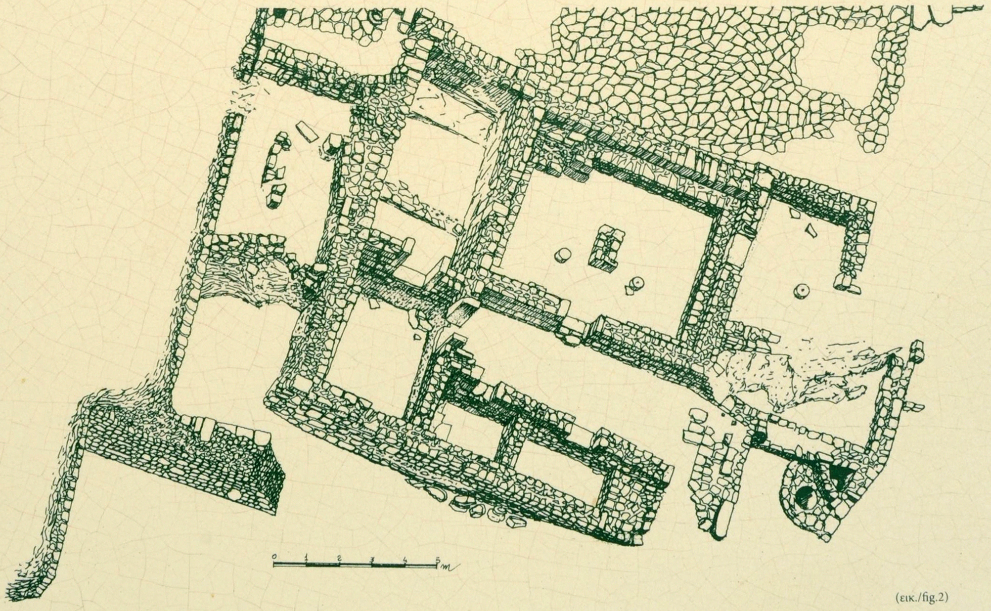 - la fonction des salles de l’aile sud et du sud de l’aile orientale, emportées par l’érosion du promontoire, n’a pas été établie.