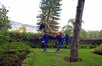 | Parkt von Santa Catarina | Der Park Heilige Catherine schaut die Beere an, und legt sich durch Lager über der kleinen Kapelle von Santa Catarina stufenförmig an, die in 1425 durch Zarco gegründet wurde. Die geblühten Bäume besetzen alles sie eingraben, und seine Alleen bieten einen sehr angenehmen Spaziergang an. Unter den Blumen erinnert eine Statue (modern), von Christophe Colomb daran, dass der Seefahrer sich in Madeira aufhielt; verloren in seinen Gedanken schaut der Seefahrer in Richtung der Atlantik an, und man erzählt, dass es hier gerade ist schließlich auf der von Porto Santo benachbarten Insel, dass ihn die Idee kommen würde, sich an der Entdeckung neuen Mondes einzuführen.