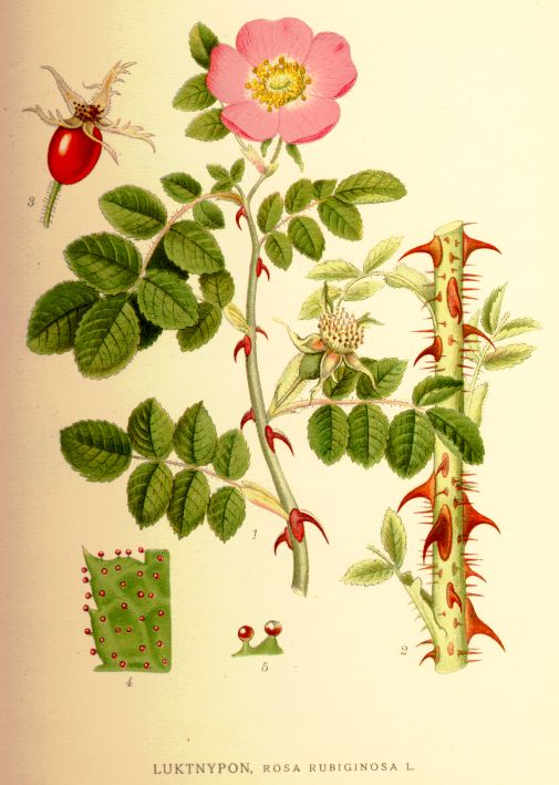 Rosier rubigineux, rosier rouillé, rosier à odeur de pomme, églantier couleur de rouille