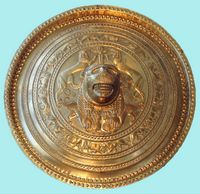 Sans aucun doute, ce bouclier était destiné à protéger les restes incinérés du guerrier mort à l’intérieur de l’urne cinéraire d’argile qu’il recouvrait. Cependant, certains détails techniques et autres suggèrent qu’il ne s’agissait pas d’une véritable arme utilisée au combat. Tant la forme du bord que la présence de détails, tels que des trous de suspension, indiquent que l’objet a été utilisé comme couvercle pour un chaudron en bronze, une identification également suggérée pour un certain nombre d’énormes « boucliers » de l’antre de l’Ida, principalement parce que la grotte où est né Zeus ne contenait aucune arme, ni offensive ni défensive, mais seulement d’immenses chaudrons, associés à des rites religieux, principalement des cérémonies d’initiation des jeunes guerriers mâles, défenseurs des villes et des sanctuaires crétois. Ce bouclier est l’un des premiers exemples de ce type, mais aussi l’un des plus beaux exemples de l’art crétois primitif à l’aube de la civilisation grecque, associé à la Syrie du Nord et à l’Ourartou. | | Dans la « Tombe des Guerriers » a aussi été découvert un grand récipient en bronze, désigné comme bol (φιάλη), cuvette (χερνιβα), bassine (λεκάνη), ou coupe à fruits (καρποδόκη) ; ce récipient, ainsi qu’un autre récipient plus petit, était utilisé pour obturer l’ouverture d’une urne funéraire. Cette utilisation n’était qu’un remploi pour des récipients dont la fonction originelle est incertaine, mais il semble qu’ils étaient placés sur des trépieds ou autres supports et renfermaient des offrandes dans des sanctuaires ou lors de cérémonies religieuses et commémoratives. La forme de ces cuvettes s’est développée à partir de récipients chypriotes similaires, mais non décorés, datant de la fin de l’âge du bronze L’urne funéraire était un stamnos (στάμνος), un récipient normalement utilisé pour conserver du vin, provenant de Théra, l’ancienne Santorin, tandis que la cuvette de bronze est d’origine phénicienne ; la provenance différente de ces deux artefacts, découverts ensemble dans la Tombeau des Guerriers, est très intéressante sur le plan des échanges commerciaux d’Eleftherna avec les régions voisines. Le cas de ce stamnos peut aussi être rapproché d’un passage particulier d’Hérodote, dans le livre IV des « Histoires » (Ἱστορίαι) : l’histoire de Phronimé (Φρονίμη), la fille d’Étéarchos (Ετέαρχος), roi de la cité d’Axos, une cité voisine d’Eleftherna ; Phronimé fut emmené à Théra par le marchand Thémisson (Θεμίσων) et, après diverses péripéties, épousa Polymneste (Πολύμνηστος), le roi de Théra, à qui elle donna un fils, Battos (Βάττος), qui fonda Cyrène, en Afrique du Nord. La décoration de cette cuvette représente une scène intéressante : une divinité féminine, trônant devant une table couverte de vaisselles de banquet et de nourriture, reçoit des offrandes de poisson de femmes, qui pourraient être des prêtresses. Derrière ces femmes se trouve un groupe de danseuses se tenant la main, et derrière la divinité un groupe de musiciens jouant de divers instruments, notamment d’instruments à cordes. La forme circulaire de cette cuvette et les danseuses se tenant « par le poignet » rappellent la description par Homère de scènes similaires représentées sur le bouclier en bronze d’Achille (Iliade, livre XVIII), réalisé par Héphaïstos, dieu de la métallurgie. Ce décor est nommé « La danse rituelle » (Ο τελετουργικός χορός). Des scènes de danse similaires sont d’abord partiellement représentées sur des plaquettes d’argile géométriques-archaïques de Chypre, tandis que des scènes plus complètes apparaissent sur des cuvettes en bronze de Chypre et de la côte syro-palestinienne, mais aussi de l’Antre de l’Ida, et d’Afrati (Αφρατί) en Crète. La grande cuvette d’Éleutherne est unique par ses dimensions et par l’intégralité de la scène représentée ; l’objet est daté du VIIe siècle avant JC. | _small.jpg) | La zone située entre le monument A1-K1, le mur d’enceinte K et le bâtiment L-L1 semble avoir été utilisée pour une série de sépultures en pithos, de sépultures ordinaires et de bûchers funéraires, placés très proches les uns des autres et souvent les uns au-dessus des autres.Les sépultures à pithos, depuis le bord ouest du site jusqu’à sa limite la plus orientale, sont orientées différemment : du nord au sud mais aussi d’ouest en est. Toutes sont recouvertes de pierres brutes, petites ou grandes, certaines prenant la forme de fausses voûtes. Certaines de leurs ouvertures étaient bouchées par de grosses pierres qui servaient également de pierres tombales. En termes chronologiques, ces sépultures commencent au VIIIe siècle avant JC et se poursuivent jusqu’au VIe siècle avant JC. On peut citer une sépulture en pithos d’un jeune éphèbe. Le pithos a son embouchure au nord et est scellé par des pierres, dont la plus grande sert de pierre tombale. À l’extérieur, près de son cou, une sépulture de chien a été trouvée sur un sol de tessons éparpillés à l’ouest. Il s’agit probablement d’un chien de chasse crétois qui a été enterré avec son jeune maître ; il s’agit d’un très rare squelette animal conservé d’un des célèbres chiens de chasse crétois de la période archaïque. Les sépultures ordinaires avec des squelettes en position étendue ou contractée, généralement sans offrande ou accompagnés seulement de quelques-unes – une fibule ou un bol en bronze, par exemple – ont également une orientation sud-nord ou nord-sud. Enfin, les bûchers funéraires, notamment dans la zone la plus orientale, sont accompagnés d’offrandes funéraires (vases en argile principalement)