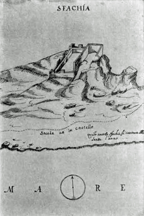 | La ville de Chora Sfakion (Χώρα Σφακίων / Chóra Sfakíon) | Chora Sfakion est une petite ville portuaire de la côte sud de la Crète, dans la province de La Canée. Chora Sfakion se trouve à environ 70 km au sud-sud-est de la ville de La Canée, le chef-lieu de la province, par la route nationale 90, puis, à partir de Vryssès (Βρύσες), par la route provinciale 54, soit environ 1 h 30 min de conduite. Chora Sfakion se trouve à la même distance, 70 km, à l’ouest-sud-ouest du chef-lieu de la province de Réthymnon, la ville de Réthymnon. Plusieurs autocars relient quotidiennement La Canée et Chora Sfakion. Vers l’est, une bonne route conduit à Frangokastello, à Rodakino, à Sellia et au port de Plakias, à 40 km de Chora Sfakion. Vers l’ouest il existe une petite route sinueuse, éloignée de la côte, qui conduit à Anopolis, à Aradaina et à Agios Ioannis. Le village de Chora Sfakion se trouve dans une région particulièrement inaccessible et accidentée, entourée par les pentes escarpées des Montagnes Blanches, qui plongent dans la mer de Libye, et les nombreuses gorges qui les sillonnent ; le village est à la sortie des gorges dénommées gorges de Sfakia, ou « gorges sfakiennes » (Σφακιανό φαράγγι) ; ces gorges sont situées à environ 2,5 km à l’ouest des célèbres gorges d’Imbros. Jusqu’après la Seconde Guerre mondiale, les gorges d’Imbros étaient la seule voie d’accès à Chora Sfakion ; plus tard, une route à revêtement a été construite entre les « gorges imbriotiques » (Ιμβριώτικο φάραγγι) et les gorges d’Imbros, permettant l’accès en voiture automobile depuis La Canée à Chora Sfakion.