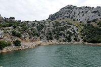 Au fond de la vallée de Gorg Blau, on aperçoit les flancs escarpés du Puig Major. Le Puig Major de Son Torrella est le point culminant de l’île de Majorque (1 432 m) et de tout l’archipel des Baléares.