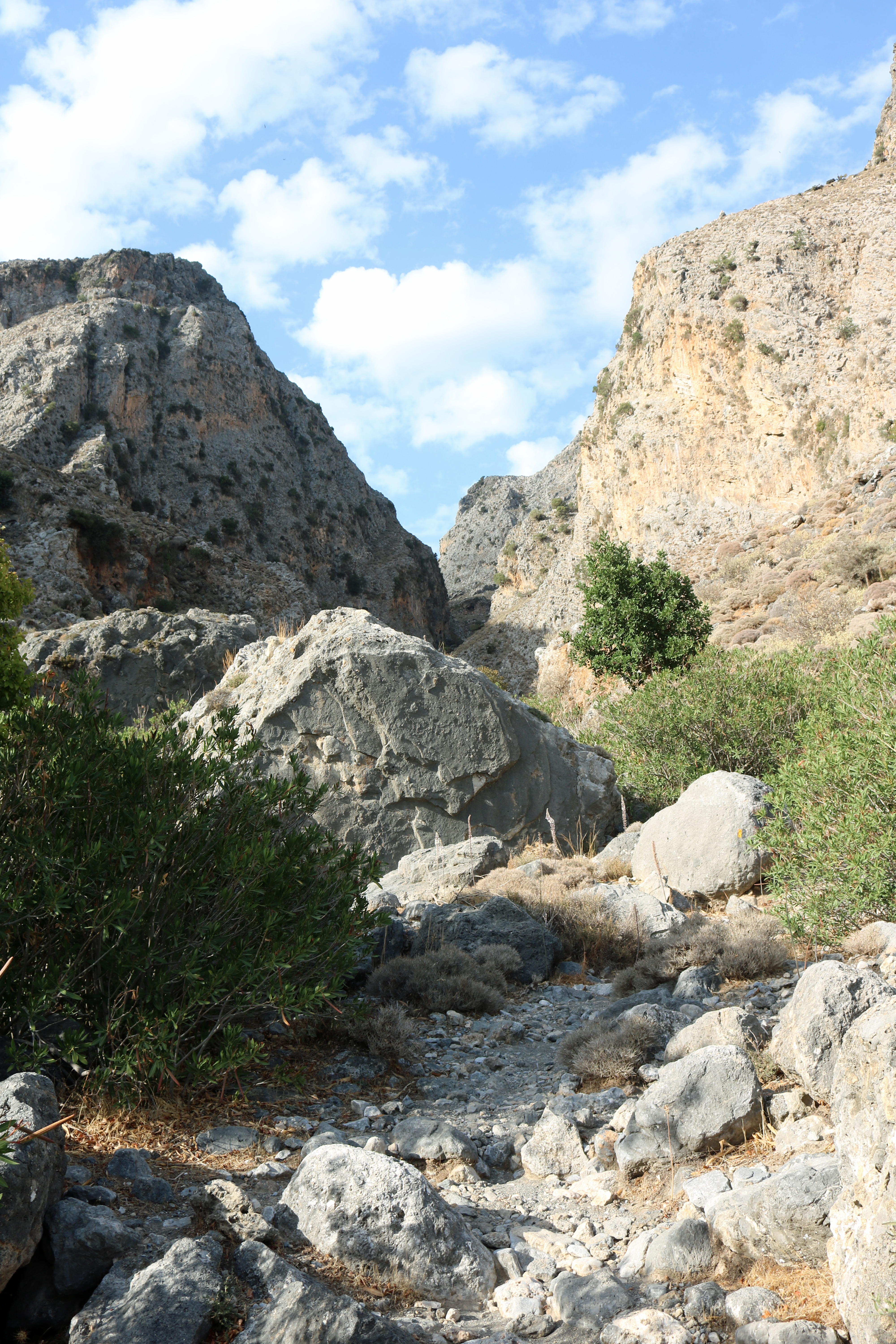 L’entrée des gorges se trouve à environ 3,5 km au sud-ouest du village, sur la petite route en lacets qui relie Kallikratis à Patsianos, à une altitude d’environ 670 m ; la traversée des gorges à une longueur de 4 km ; la sortie des gorges se trouve à environ 120 m d’altitude ; le dénivelé est de 550 m pour une pente moyenne d’environ 13 %. Aller à l’entrée des gorges de Kallikratis avec Google Maps (35.231206, 24.241115). À environ 1,5 km à l’ouest des gorges de Kallikratis se trouvent les gorges d’Asfendos (φαράγγι Ασφένδου) qui descendent du village d’Asfendos (Άσφενδος) vers la plaine côtière ; il existe un chemin muletier dans ces gorges par lequel transhumaient les troupeaux ; il est possible d’effectuer un circuit en empruntant ces gorges pour remonter vers Asfendos puis retourner à Kallikratis par la route provinciale 55. |
