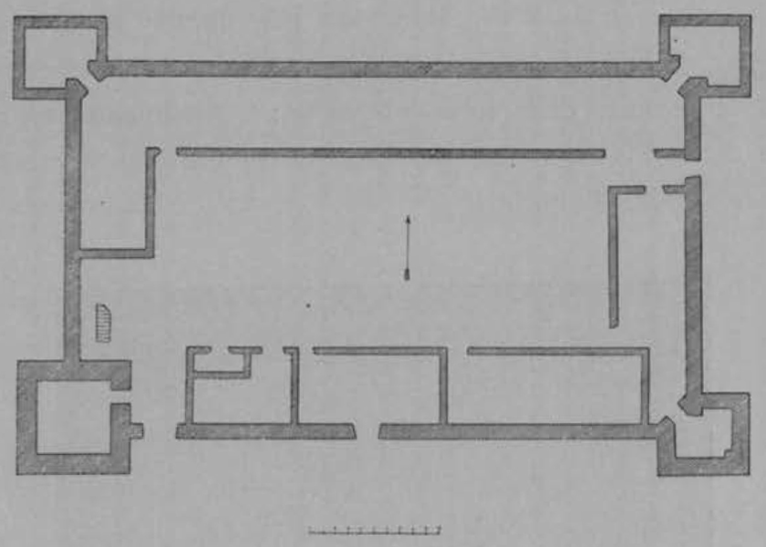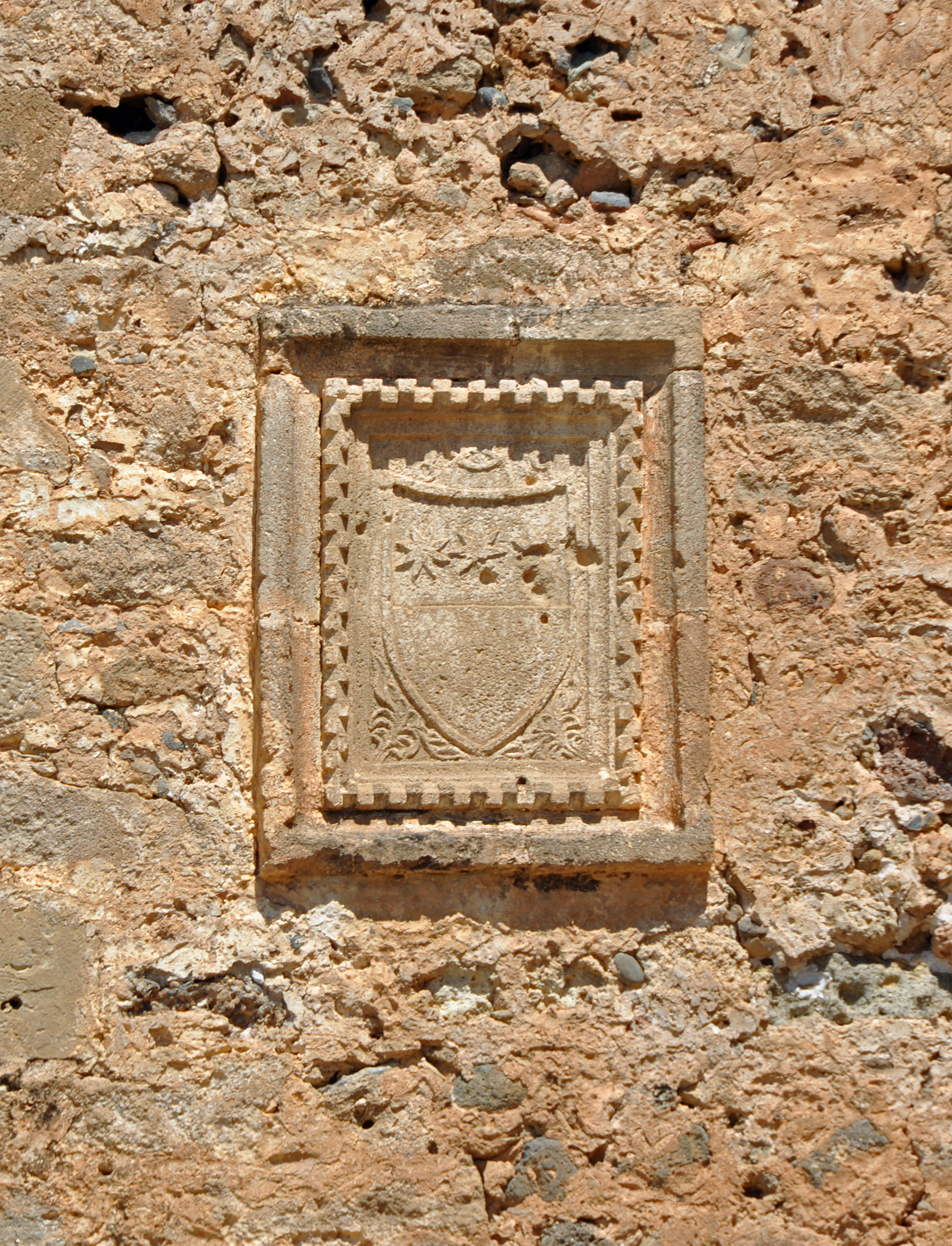 Les murs des tours et des courtines sont peu épais et paraissent construits avec de petites pierres irrégulières, peu solidement liées au mortier, même si la construction remploya aussi des pierres taillées toutes prêtes récupérées des ruines de la cité antique d’Agios Nikitas. Les courtines et les tours sont surmontées de parapets crénelés de merlons carrés. Des embrasures de tirs sont percées, à chaque niveau, dans les murs des quatre tours ; au XIXe siècle des embrasures à canon supplémentaires furent percées au niveau inférieur des courtines ; elles n’apparaissent pas sur le dessin de Raffaele Monanni datant de 1631. Les tours carrées comportaient trois planchers, de nos jours effondrés ; la tour du sud-ouest était plus haute et plus forte que les trois autres tours et constituait le donjon, qui était l’ultime ligne de défense en cas de siège du château. Il semble que, au rez-de-chaussée, toutes les tours étaient couvertes d’une voûte en berceau, comme l’est encore partiellement la tour du sud-est, avec une trappe centrale menant à l’étage ; cependant, on pouvait également accéder à l’étage de l’intérieur de la cour par une échelle à main, qui menait à la porte située au-dessus, correspondant à la porte du dessous. Le donjon protégeait la porte principale, la Porte de la Mer, située au pied de ce donjon, ouverte dans la courtine du sud, à 200 m du petit port. La Porte de la Mer était surmontée de quatre écussons de grandes familles patriciennes vénitiennes, dont il ne subsiste que le premier et le quatrième, celui des Querini et celui des Dolfin, meublé de trois dauphins ; au-dessus, se trouvait un bas-relief représentant l’emblème de la République de Venise, le Lion de Saint-Marc ; un autre écusson des Querini, plus petit et encadré, se trouvait sur le mur oriental du donjon, adjacent à la Porte de la Mer ; les Querini furent seigneurs de la châtellenie de Téménos, au sud de Candia, à partir de 1597 ; ces écussons ont vraisemblablement été apposés lors de la rénovation du château entre 1593 et 1597. Dans la courtine orientale était ouverte une seconde porte, une porte voûtée de dimensions plus modestes, la Porte de la Terre ferme. | _small.jpg) _small.jpg) _small.jpg) _small.jpg) _small.jpg) _small.jpg) _small.jpg) | À l’intérieur de l’enceinte les courtines étaient bordées par des bâtiments, éclairés par des fenêtres ouvrant sur la cour, bâtiments qui étaient utilisés comme quartiers d’habitations rudimentaires pour les soldats, comme cuisine, comme écuries ou comme entrepôts ; les toitures de ces bâtiments donnaient accès, vraisemblablement par des escaliers en bois, aux chemins de ronde où les combattants pouvaient se poster aux créneaux pour faire feu sur les assaillants ; les soldats accédaient aux toitures par des ouvertures percées dans les coins intérieurs chanfreinés des tours d’angle. À partir du XIXe siècle, les planchers du niveau inférieur donnaient accès aux embrasures de tir qui avaient été percés au bas des courtines. Au milieu de la cour il y avait un petit bâtiment qui était vraisemblablement une chapelle dédiée à saint Marc ; il semble qu’il y aurait eu aussi un puits.De nos jours il ne subsiste du château de Frangokastello que les courtines et les murs des tours d’angle. À l’intérieur on peut encore voir quelques pans de murs des bâtiments, percés de fenêtres, mais tous les plafonds et les planchers des bâtiments et des tours sont effondrés. | _small.jpg) _small.jpg) _small.jpg) _small.jpg) _small.jpg) _small.jpg) _small.jpg) | Visite du château de Frangokastello : Horaires : ouvert pendant la saison touristique, d’avril à octobre, de 10 h à 17 h 30 min ; fermé le mardi. Prix d’entrée : environ 2 €. Horaires très changeants et entrée gratuite pendant les travaux de restauration en cours sous l’égide de l’Éphorie des Antiquités de La Canée. |