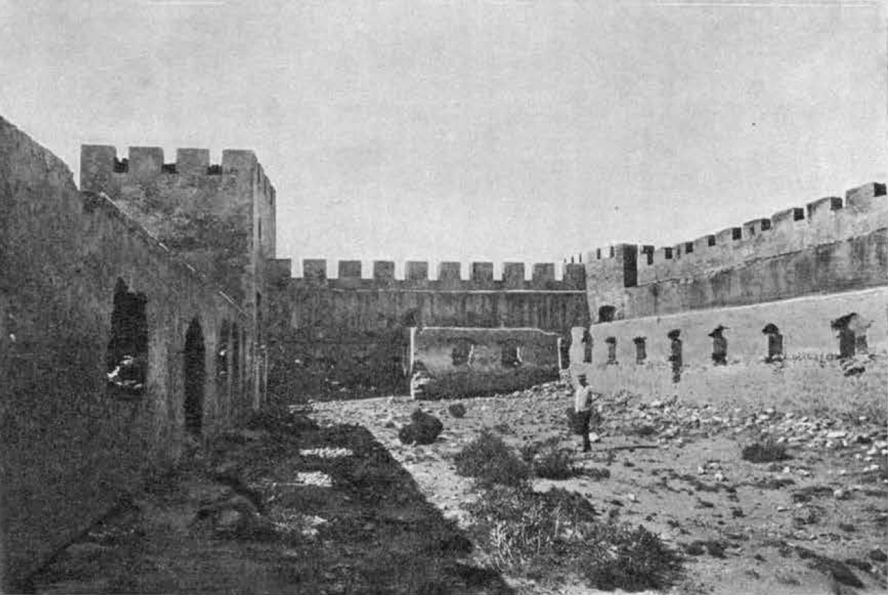 Le pacha Mustapha Naili fit démanteler le château de Frangokastello afin qu’il ne puisse plus être utilisé par les rebelles crétois. Lors de son retour vers la garnison de Hanya le pacha et ses troupes pratiquèrent la « politique de la terre brûlée » en incendiant les forêts où pouvaient se cacher les rebelles sfakiotes ; cependant ils tombèrent dans des embuscades tendues par les rebelles, notamment près de Chalara (Χαλάρα), dans la région de Kryonérida (Κρυονερίδα) ; les Turcs perdirent près d’un millier de soldats supplémentaires. Les Turcs parvinrent à Hanya le 30 mai 1828. Le château de Frangokastello fut laissé à l’abandon, sans garnison, pendant de nombreuses années. Lors du soulèvement crétois de 1866 à 1869, Mustapha Naili était toujours le pacha de Hanya – au point qu’il avait gagné le surnom de « Giritli », c’est-à-dire le « Crétois » ; le pacha fit restaurer, voire reconstruire, le château de Frangokastello. Le Castel San Nichita est une fortification d’époque médiévale construite au XIVe siècle, avant l’invention de la fortification bastionnée qui n’apparaîtra que vers le milieu du siècle suivant. Le château de Frangokastello est de plan rectangulaire, d’environ 48 m de longueur d’ouest en est, et de 28 m de largeur du sud au nord ; l’enceinte est constituée de quatre courtines verticales, et jalonnée aux quatre coins de tours carrées ; ce type de fortification était inapte à dévier les boulets de canons d’éventuels assiégeants. D’autres châteaux de ce type sont encore visibles en Crète, par exemple la forteresse d’Iérapétra, construite au début du XIIIe siècle, située elle aussi en bord de mer, ou le Castel Chissamo, de conception similaire, mais de plan pentagonal.