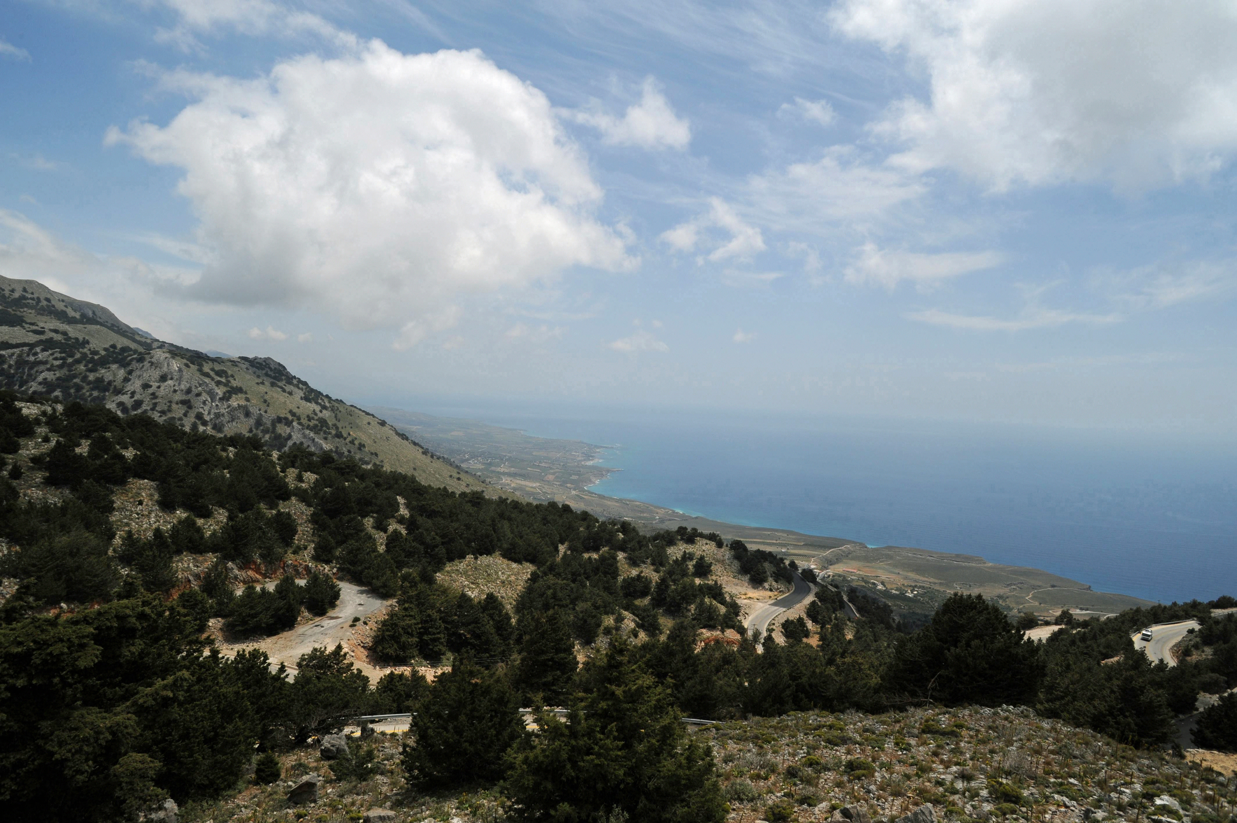 | | Sur la route d’Impros à Épiskopi | La route d’Impros à Épiskopi est l’enchaînement de la route provinciale 55 de la province de La Canée et de la route provinciale 1 de la province de Réthymnon. La route provinciale 55 part d’une bifurcation à gauche de la route provinciale 54 de Vryssès à Chora Sfakion, au nord du village d’Impros, à environ 810 m d’altitude, et escalade le flanc sud-ouest du mont Angathès (βουνό Αγκαθές) jusqu’à environ 1 120 m d’altitude ; la route redescend ensuite en direction d’Asfendos (Άσφενδος) puis de Kallikratis, à environ 750 m d’altitude ; environ 2,5 km après Kallikratis, la route atteint la bordure avec la province de Réthymnon. La route provinciale 1 de la province de Réthymnon atteint d’abord le village de Myriokéfala (Μυριοκέφαλα), à environ 580 m d’altitude, puis Argyroupoli (Αργυρούπολη), à 280 m, et continue en direction du nord vers Épiskopi (Επισκοπή), à 120 m, en longeant la vallée de la rivière Moussélas.