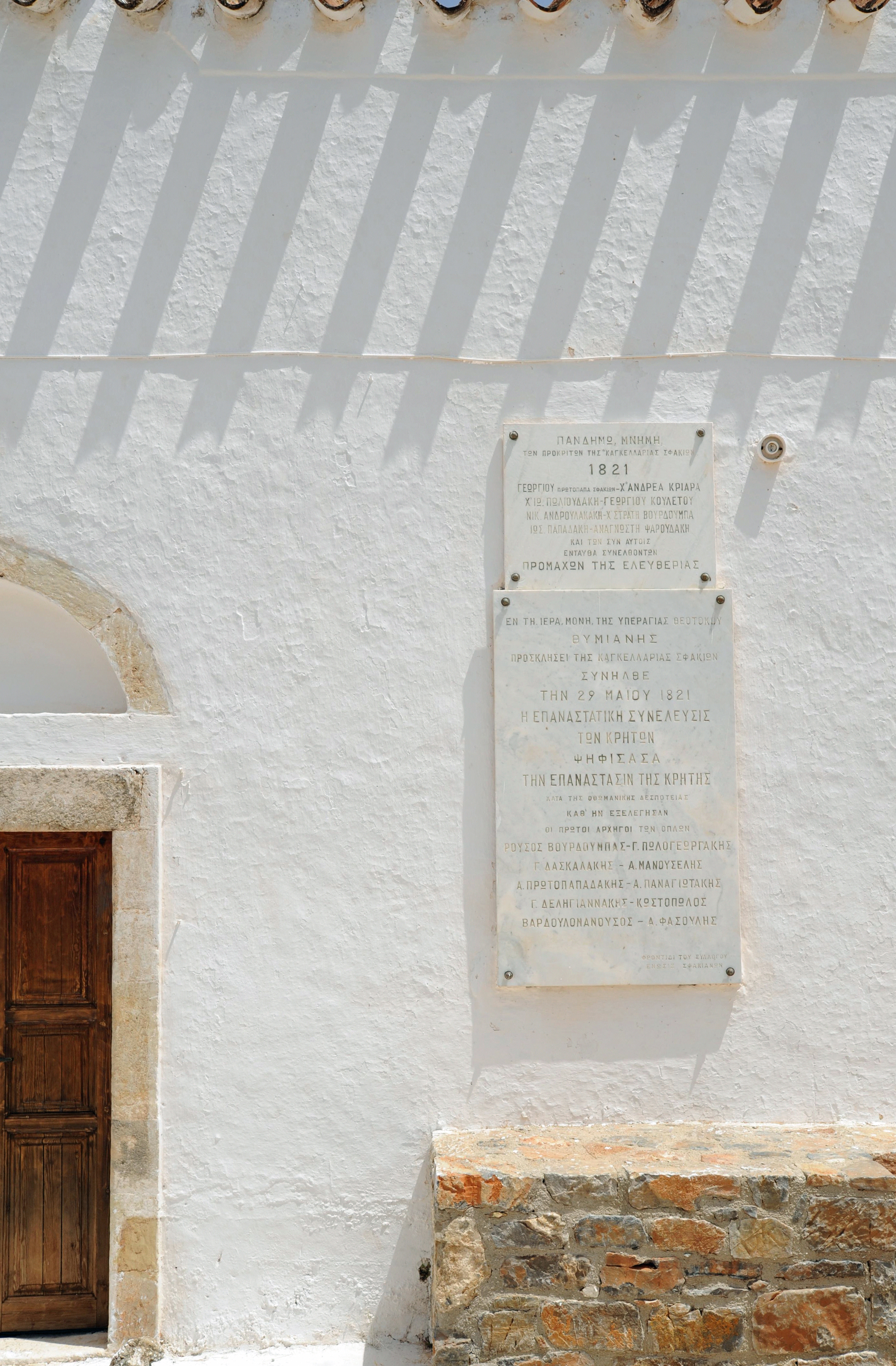 Horaires de visite : du lundi au samedi, de 9 h à 21 h. Site sur la Toile : www.warmuseumaskifou.com Prix d’entrée : 5 €. À quelques centaines de mètres au sud-est du village de Karès se trouve une colline escarpée et presque conique ; au sommet de cette colline les Turcs construisirent une tour de défense après le soulèvement crétois de 1866. Cette tour (kule) était aussi un relai de communication visuelle entre la côte nord et la côte sud de l’île. Un peu plus au sud de Karès se trouve une autre colline sur laquelle est construit le village de Goni. | _small.jpg) _small.jpg) _small.jpg) _small.jpg) |